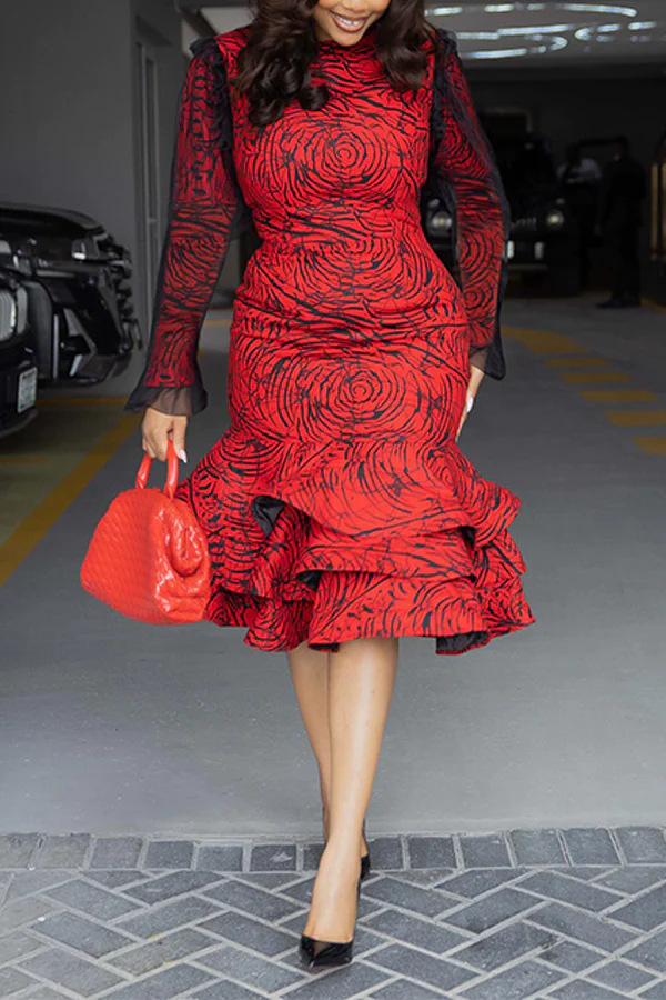 2023 frühjahr Neue Produkt frauen Gestapelt Dekorative Gedruckt V-ausschnitt Midi Kleid Mode Retro Muster Gedruckt Rock