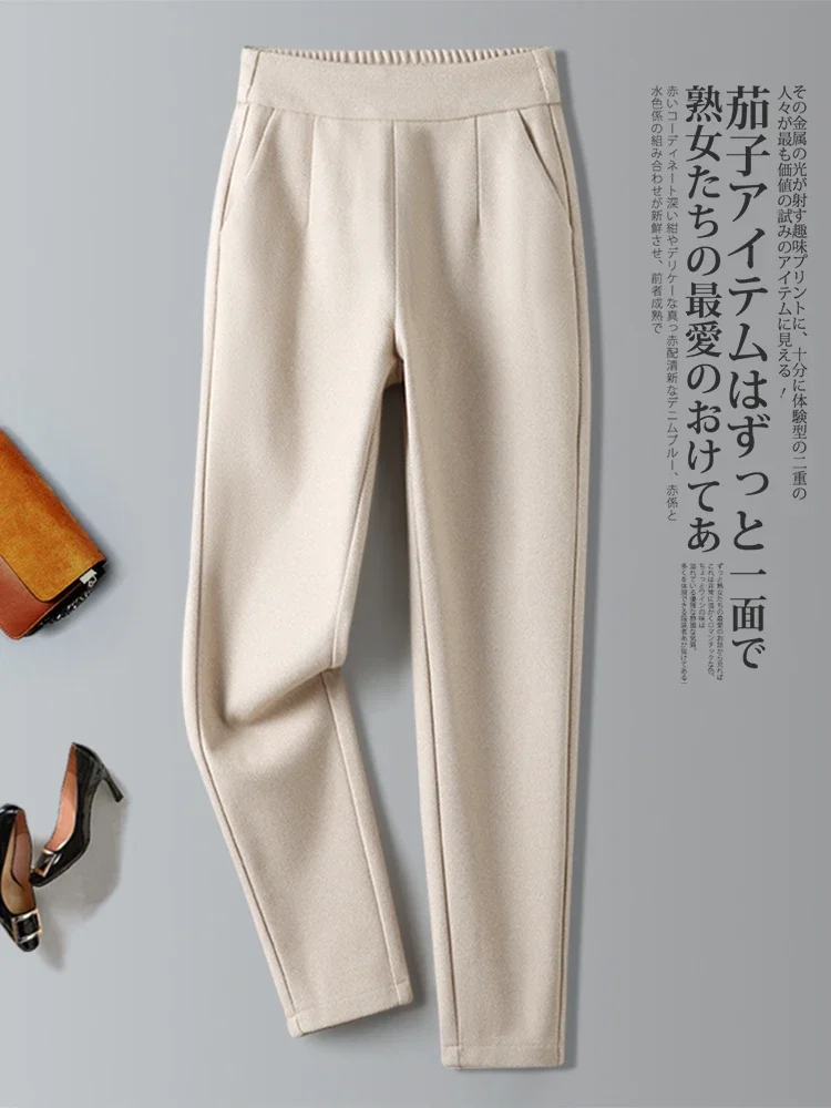 Woolen Fischgräten Harem Bleistift Hohe Taille Koreanische Mode frauen Hosen Casual Büro Dame Hosen Dicke Anzug Hosen Für Frauen