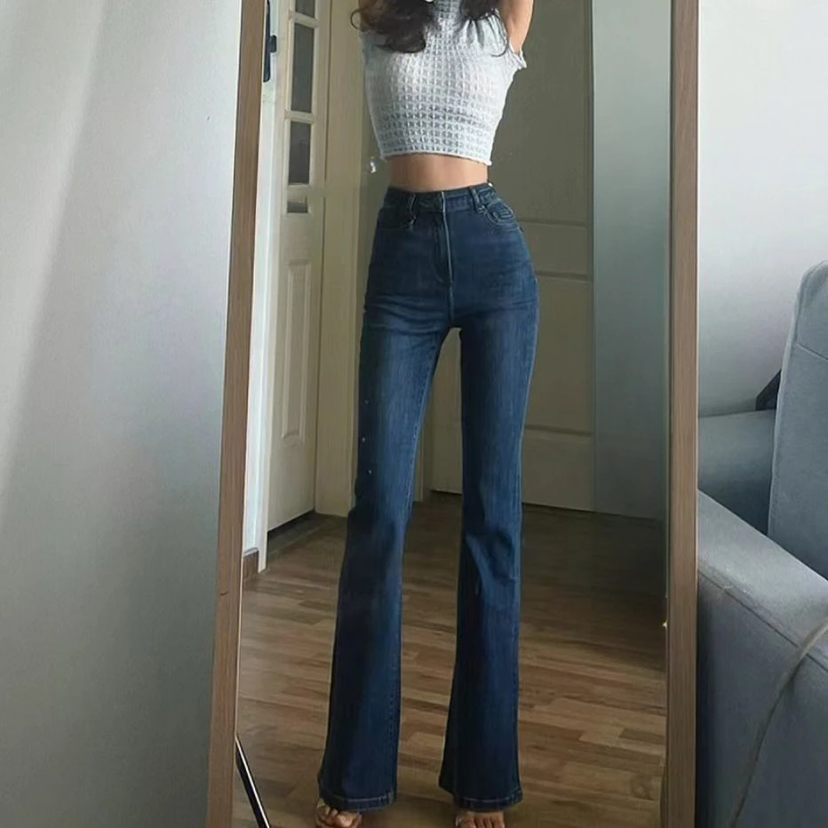 Amerikanische Retro Y2K Flare Jeans Zerkratzt Slim Bell Bottoms Frauen Mode Gyaru Denim Hose Raw Edge Hosen Hip Hop High Street