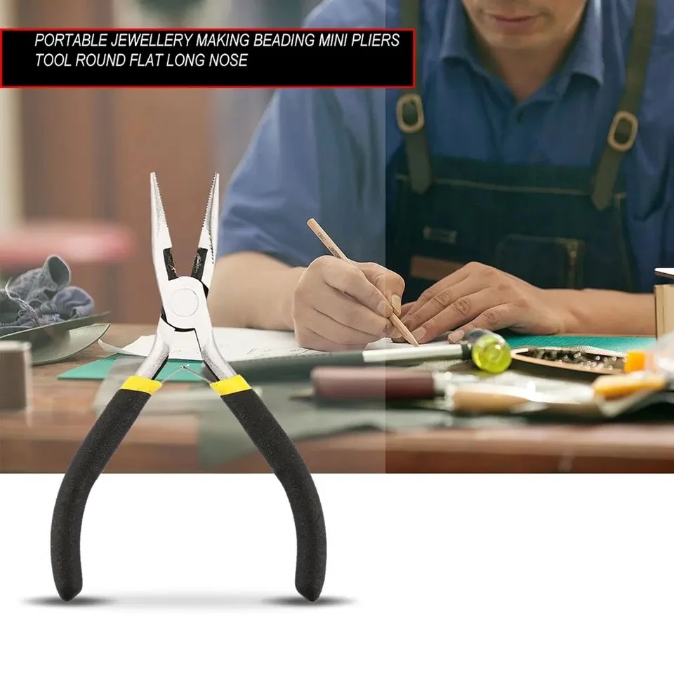 1 Stück Tragbare Langlebige Schmuckzange aus Kohlenstoffstahl, Leichtgewichtige Mini-Zange, Handwerkzeug, Runde Flache Langschnabelzange - TopDealBox
