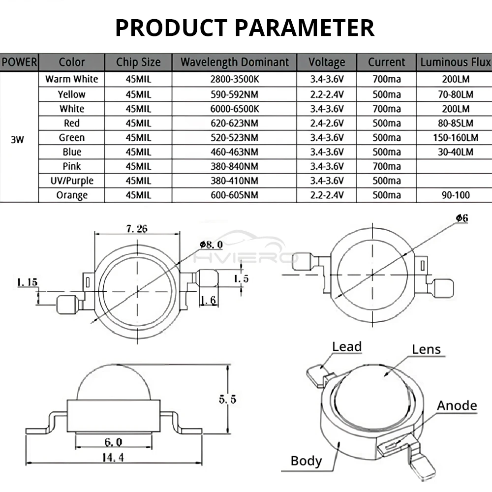 10 Stücke DC 3 V 3 Watt High Power Leuchtdiode LEDs Chip SMD Lichter Perlen Emitter Weiß Rot grün Blau Gelb Glühbirne Dioden Lampen - TopDealBox