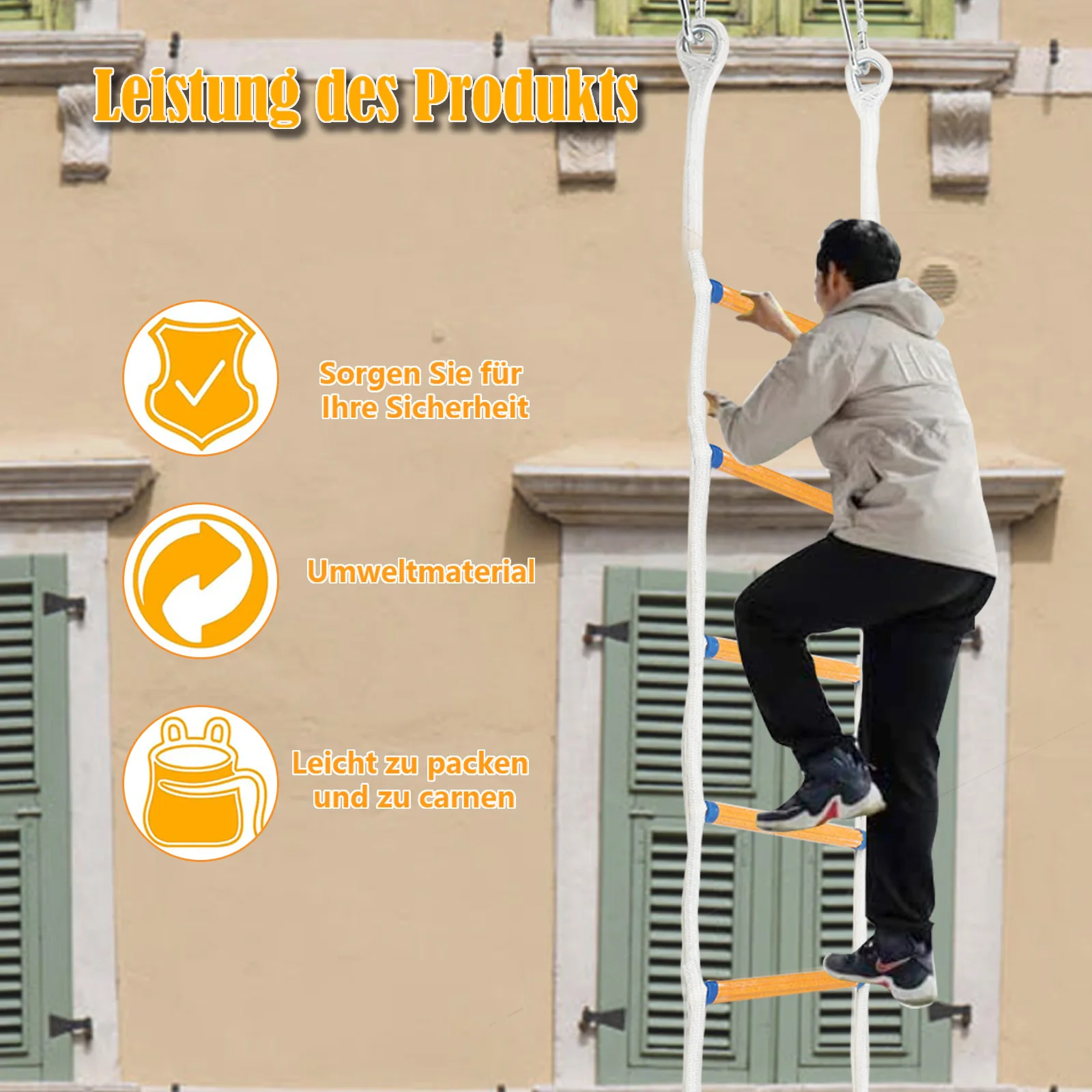 10m Notfall-Fluchtleiter 200kg Tragfähigkeit mit 2 Karabinern Feuerwehrleiter Sicherheitsleiter für Fenster- und Balkonrettung - TopDealBox