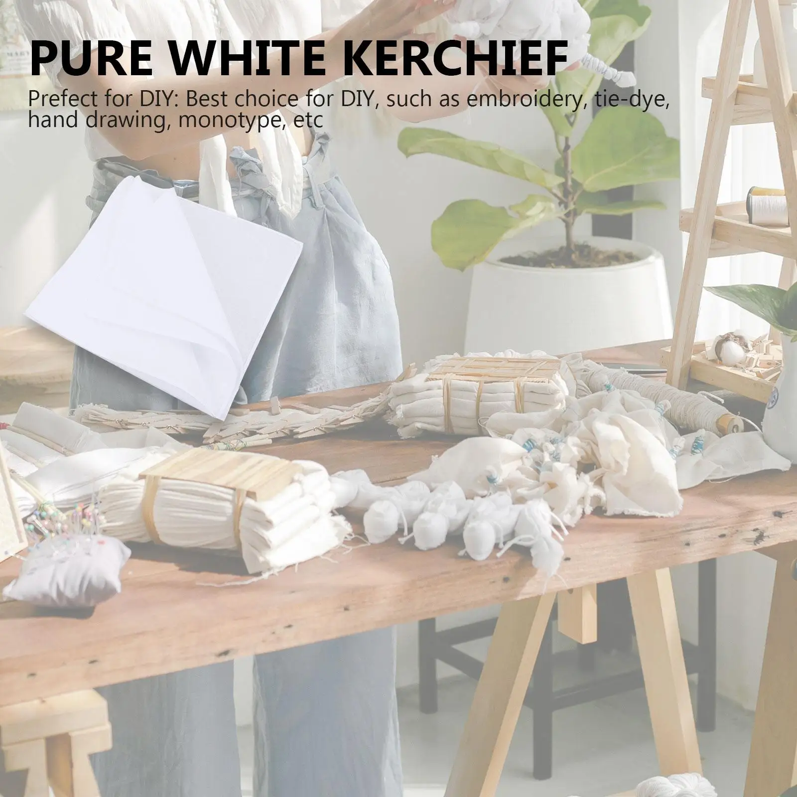 12-teiliges Baumwoll-Taschentücher, reinweißes Kopftuch, quadratisches Handtuch, Malhandtuch, Baumwoll-Taschentuch, Batik-Malhandtuch - TopDealBox
