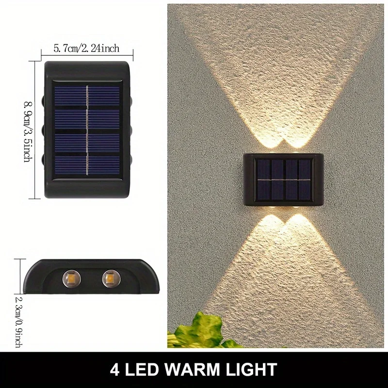 1/2/4/6 Stück, 4 LEDs Solar-Auf- und Ab-Leuchte, leuchtende Wandleuchte, Außenwand, konvexer Spiegel, Modellierung, Gartenwand, dekoratives Licht - TopDealBox