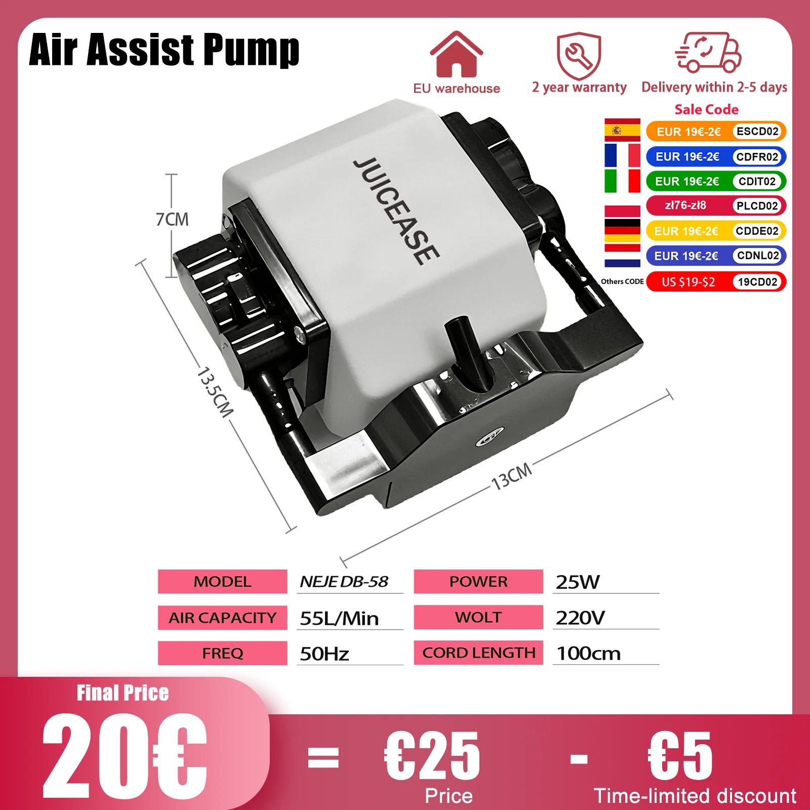 ♡SchnellansichtNEJE Laser-Luftunterstützungspumpe, 220 V, 25 W, 55 l/min, 50 Hz, Luftpumpe, einstellbare Luft für Lasergravurmaschinen und Sauerstoffanreicherung im Aquarium27.90 EUREUR 55.80Heiß★★★★★★4.9