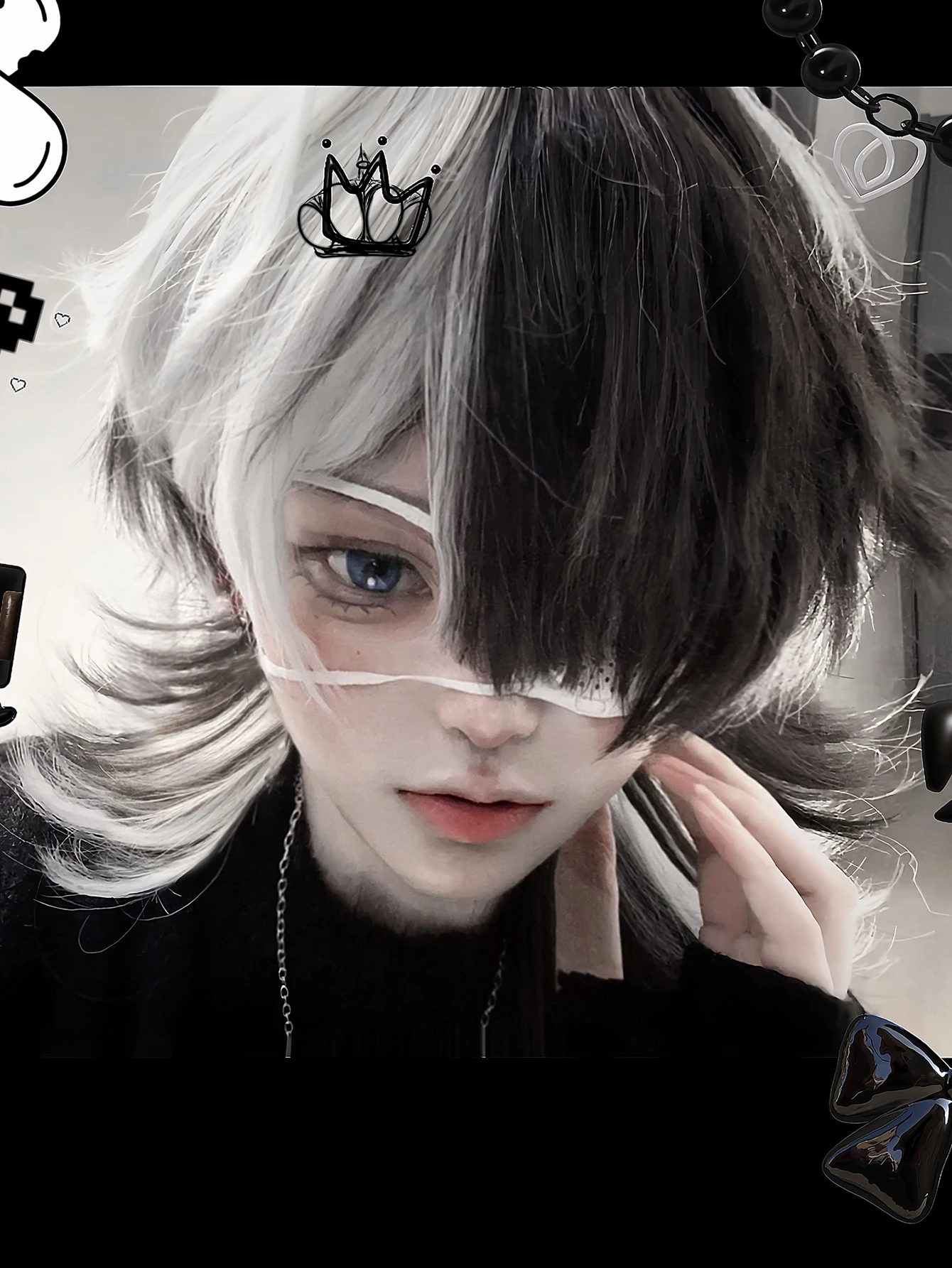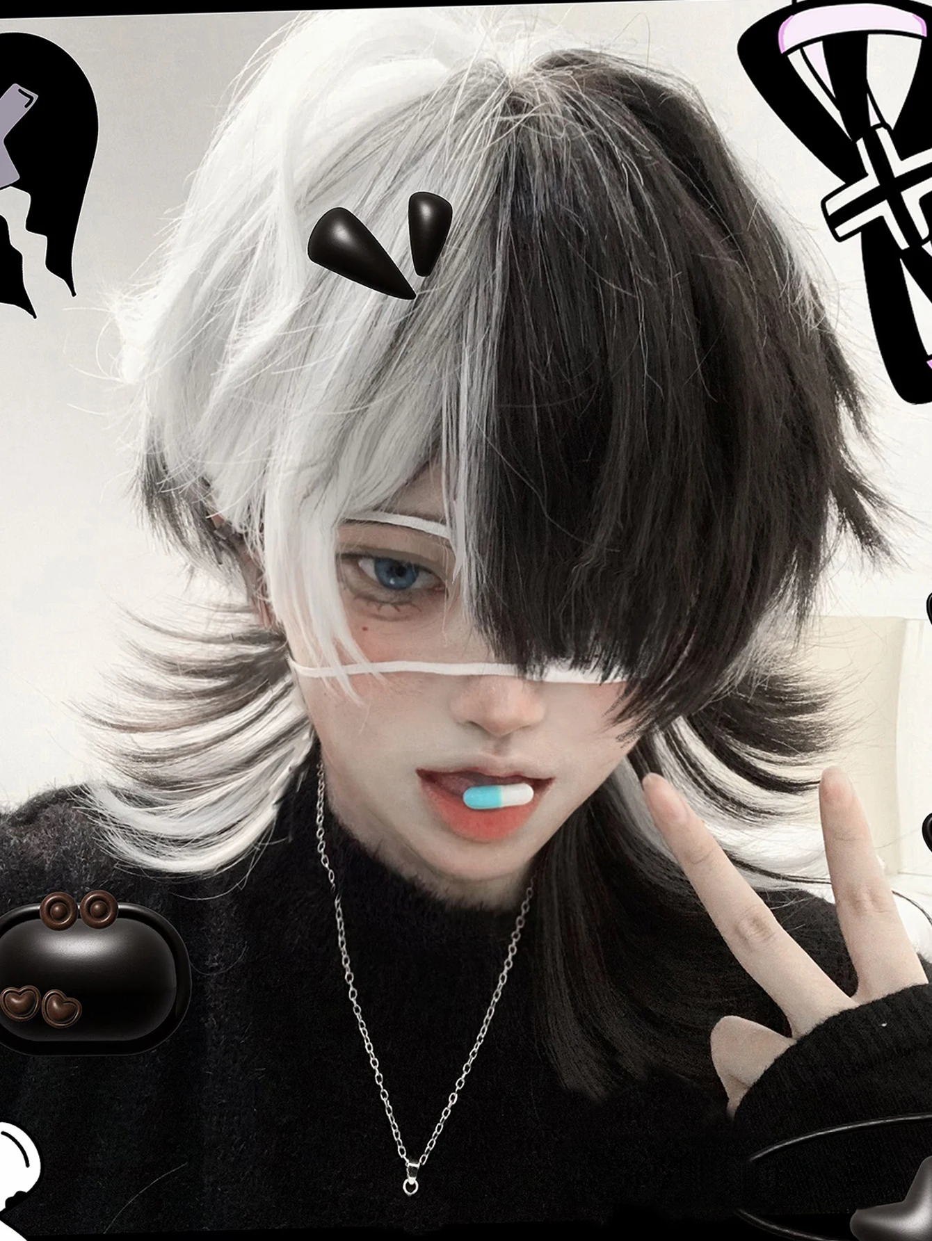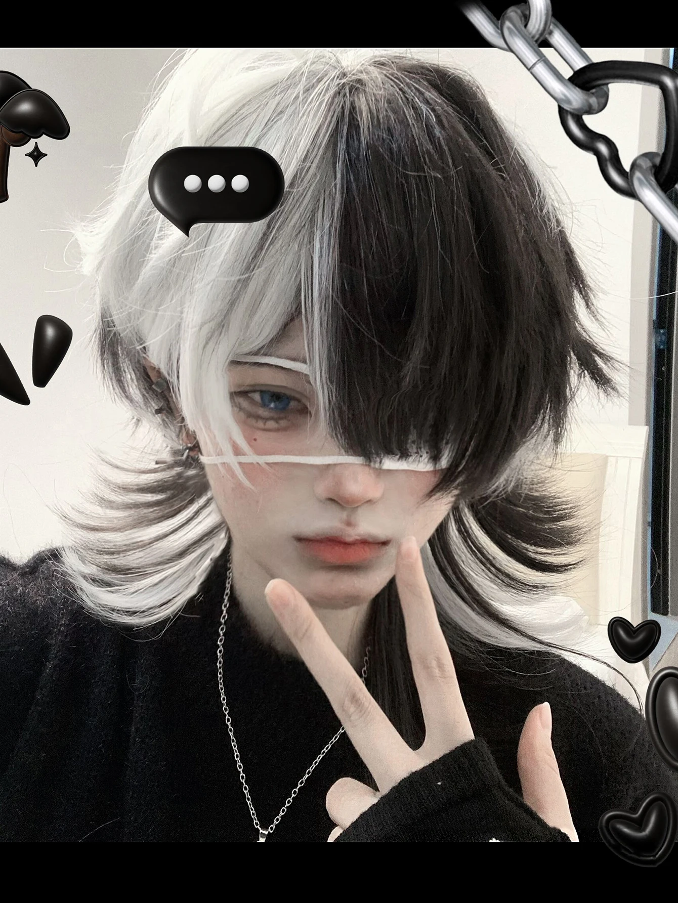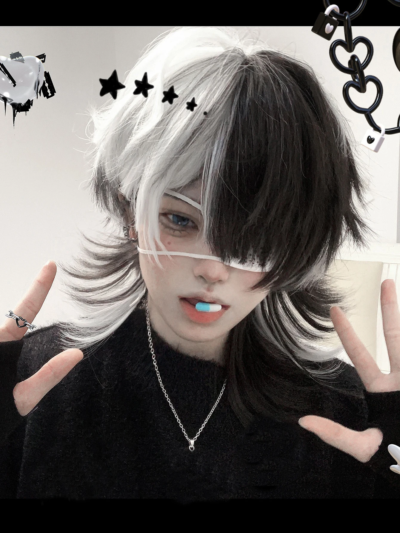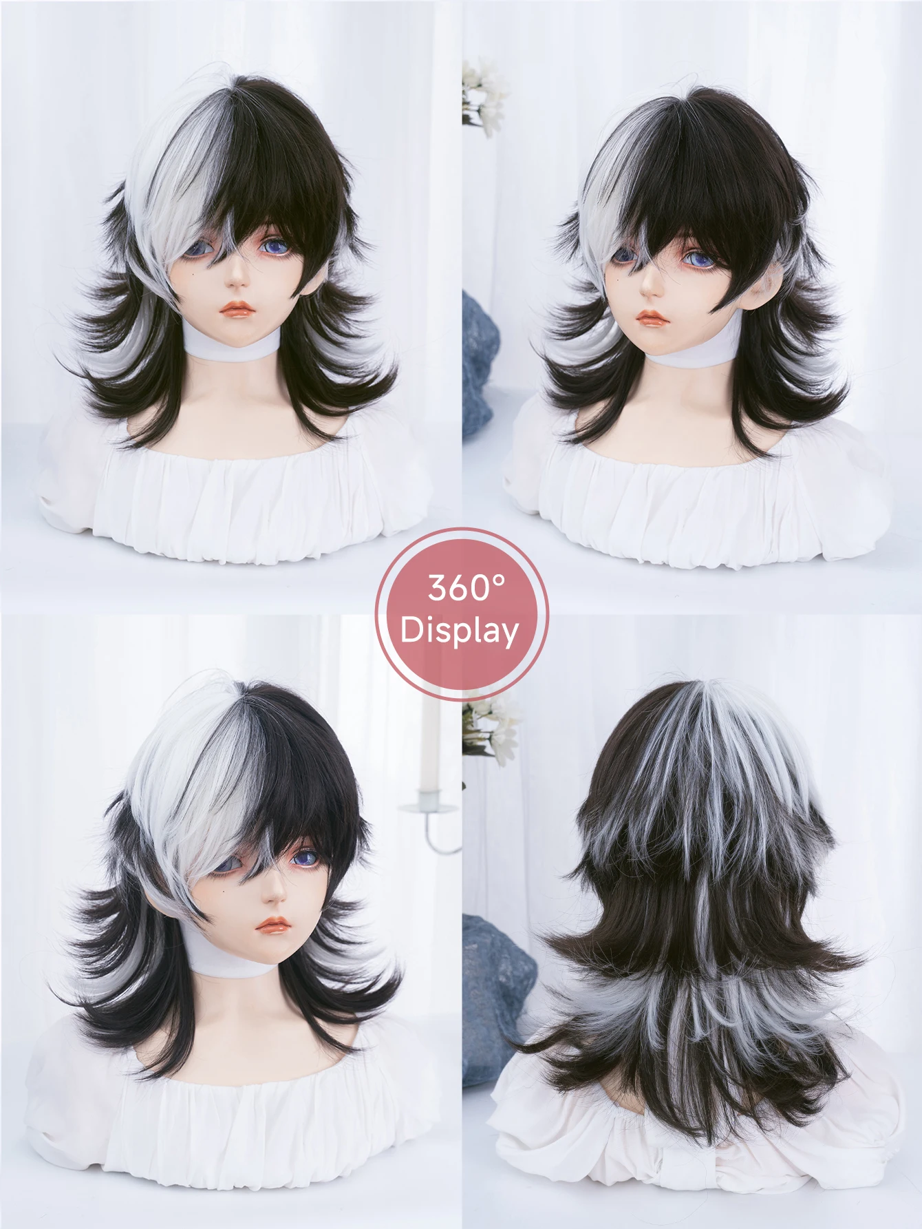 16 Zoll schwarz Highlight weiße Farbe schöne synthetische Perücke mit Knall mittel natürliche gewellte Haar Perücke für Mann oder Frau hitze beständig - TopDealBox