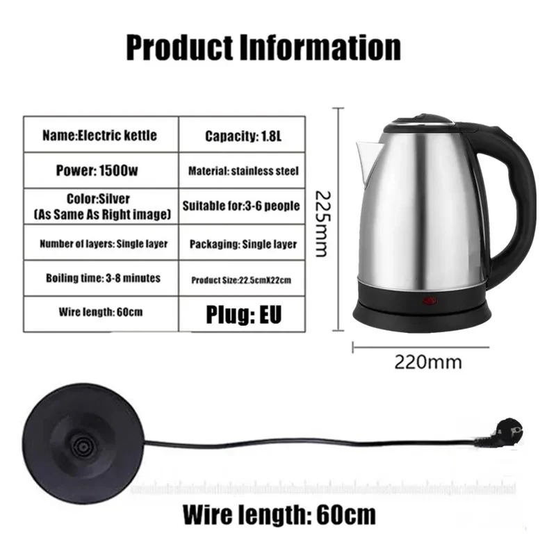 1,8 l 220 V Edelstahl-Wasserkocher, silberfarben, schwarz, Basistrennung, Desion, rostbeständig, langlebig, für Zuhause während der Reisen - TopDealBox