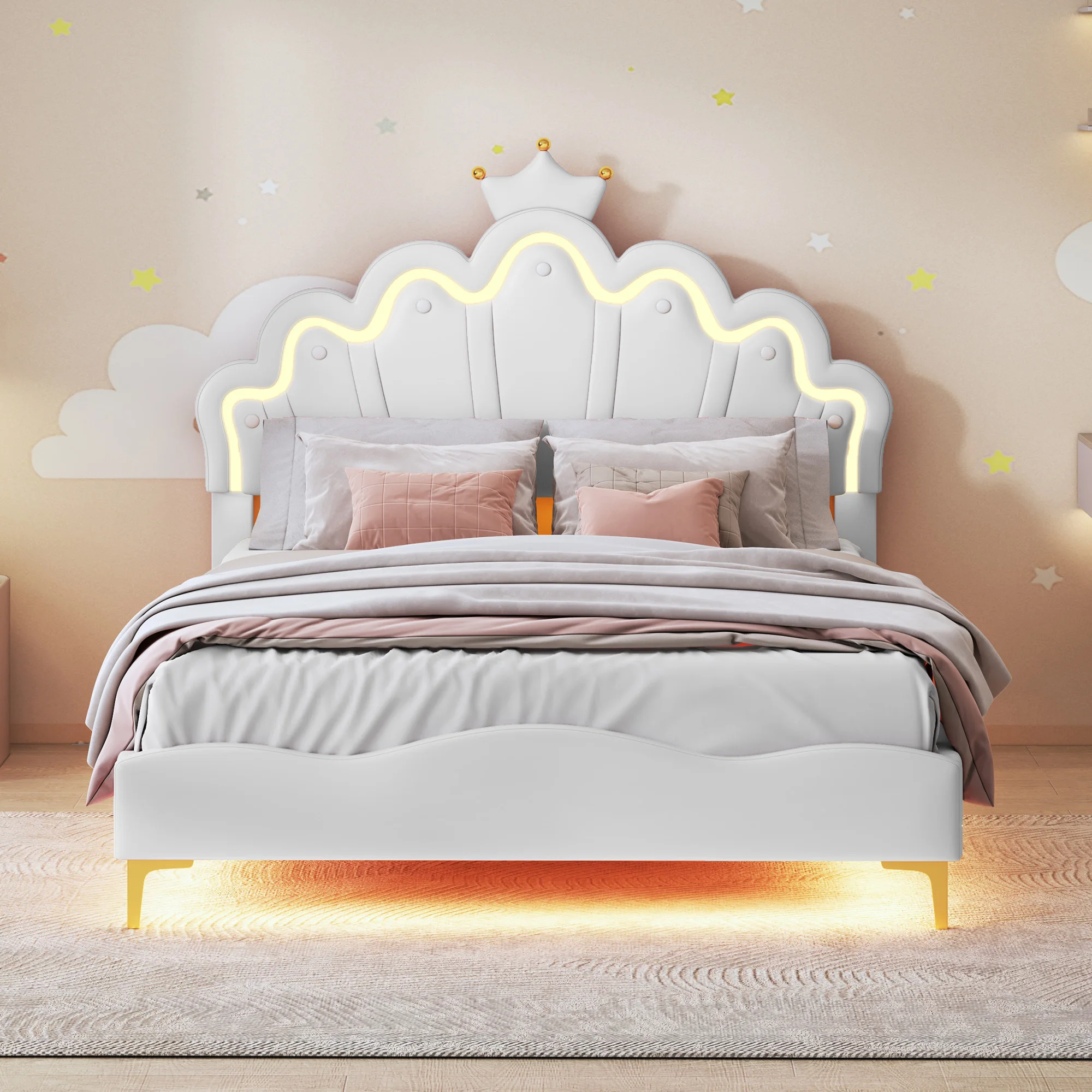 ♡SchnellansichtFlaches Doppelbett, kronenförmiges Prinzessinnenbett, Polsterung aus weichem PU-Leder, verstellbarer LED-Umgebungslichtstreifen, 140 x 200 cm, Weiß224.39 EUREUR 410.50Heiß