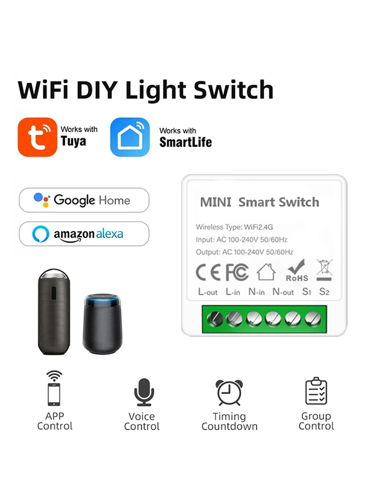 2-Wege-Steuerung Tuya Mini 16A WLAN-Schalter Smart Life App Smart Home Automatisierungsmodul Schalter Kompatibel mit Alexa Google Home - TopDealBox
