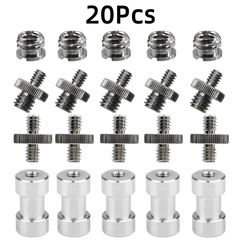 20 Stück 1/4 Zoll auf 3/8 Zoll Innengewinde, Konvertierungsadapter, Zapfenbolzen, männlicher Adapter, Metallschraube für Blitzlicht, Stativ, Fotostudio-Set - TopDealBox