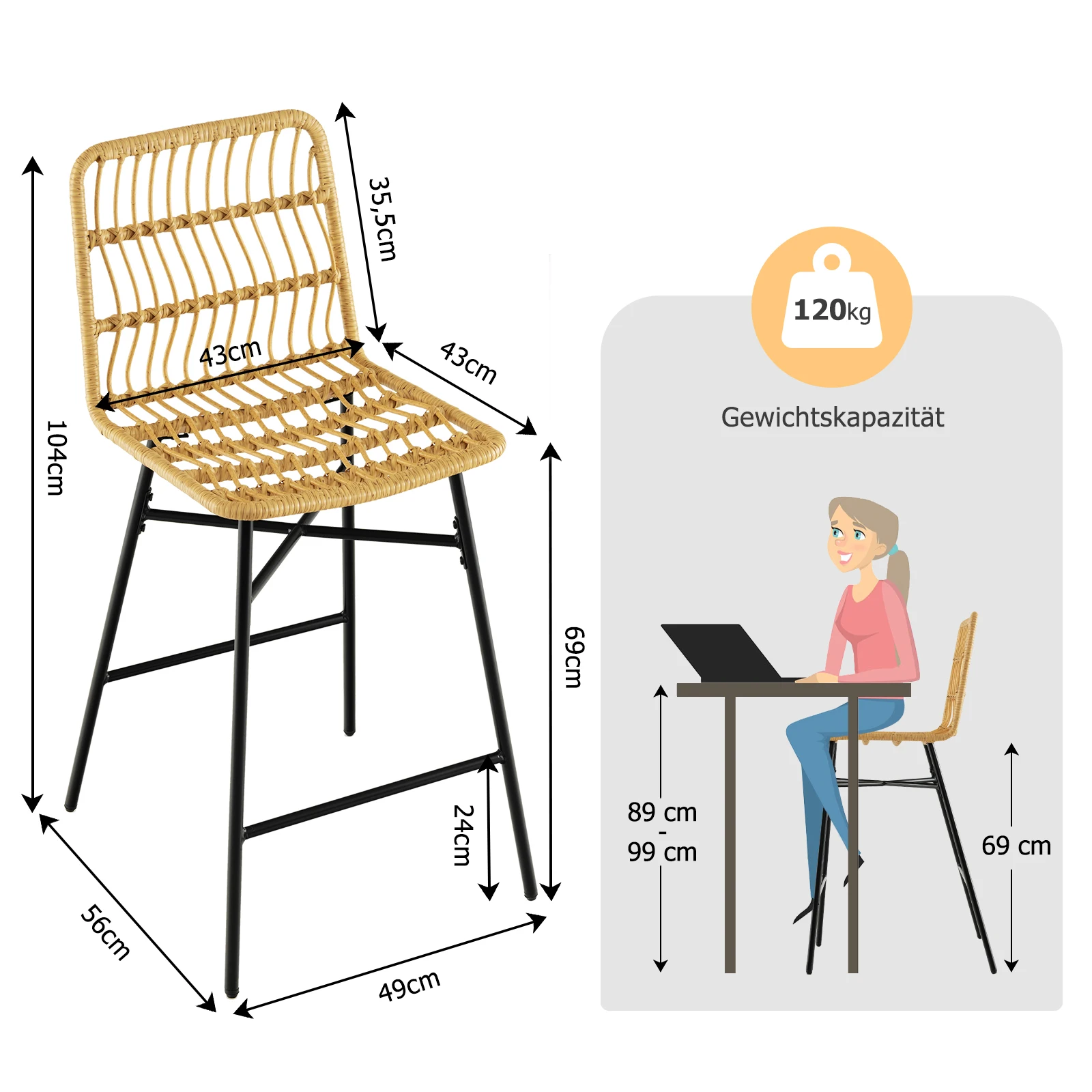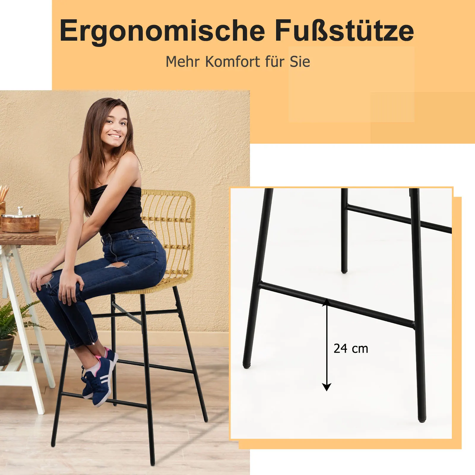 ♡SchnellansichtBarhocker 2er Set, Barstuhl mit Rückenlehne aus Rattanimitat, Küchenstühle Höhe 75 cm mit Metallgestell und Fußstütze92.44 EUREUR 163.25Heiß