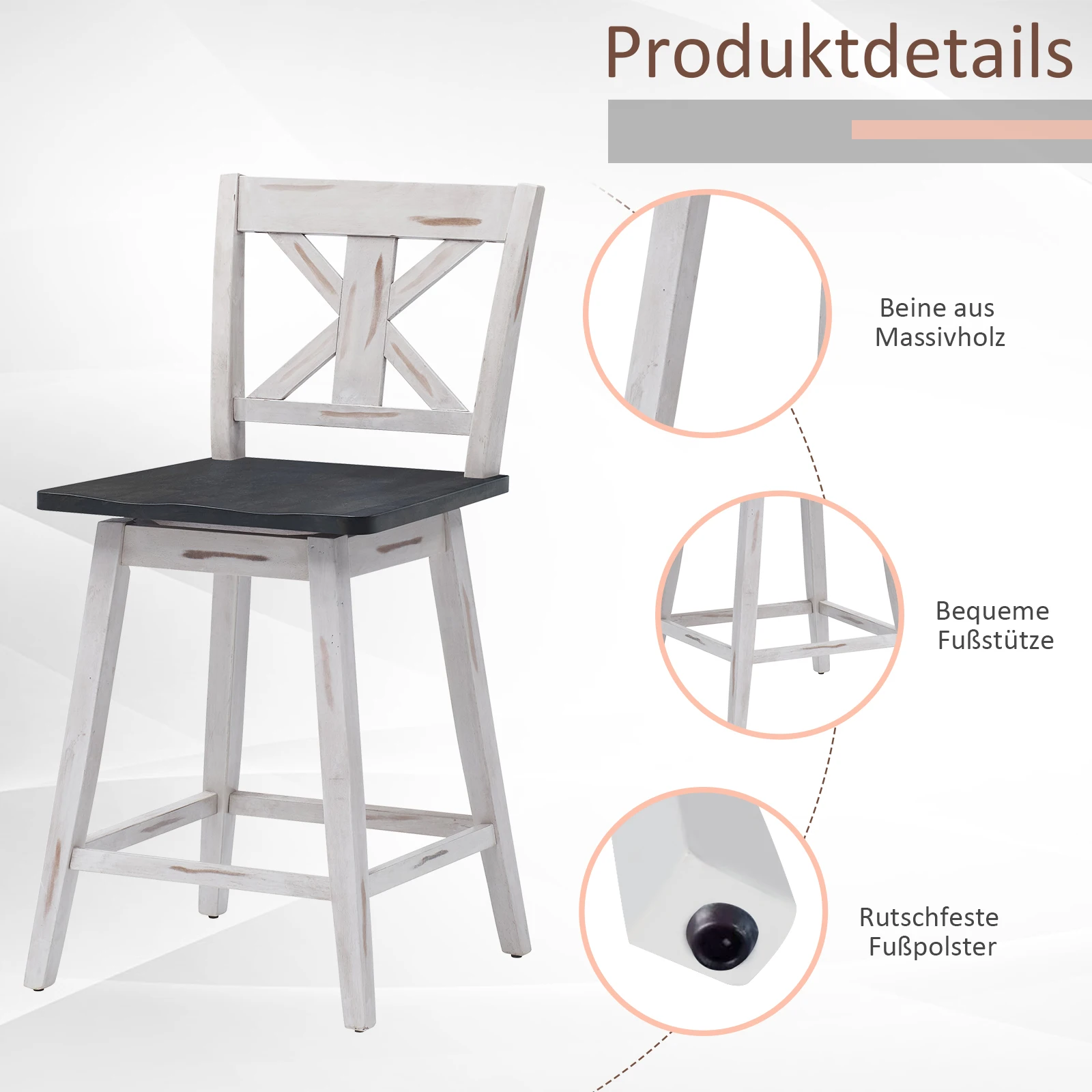 ♡Schnellansicht2 Stück/Set moderner Drehbarstuhl, 360 ° Verstellbarer Barhocker in Thekenhöhe, mit Rückenlehne ohne Handläufe, geeignet für Bar,89.69 EUREUR 1444.28Heiß★★★★★5.0