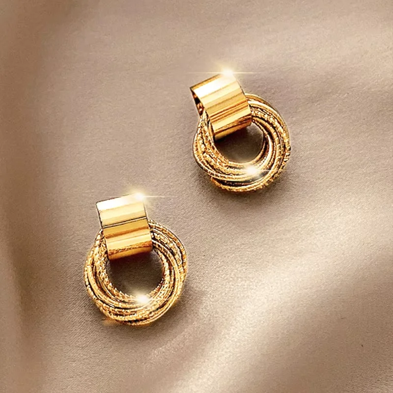 2PC Retro Metall Gold Multi schicht Schleife Anhänger Ohrringe für frauen Mode Schmuck Party Täglichen Tragen Passenden Zubehör-4841 - TopDealBox