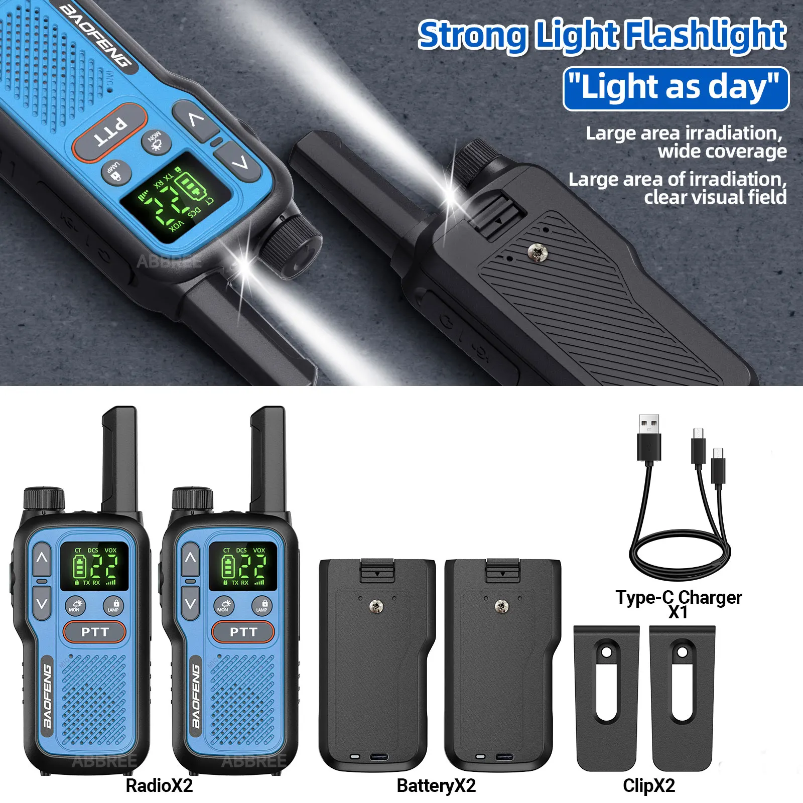 2PCS Baofeng BF-T18 Mini Dual PTT Walkie Talkie Tragbare PMR FRS Lizenz-Freie Taschenlampe NOAA Long Range unterstützung Typ-C Ladegerät - TopDealBox