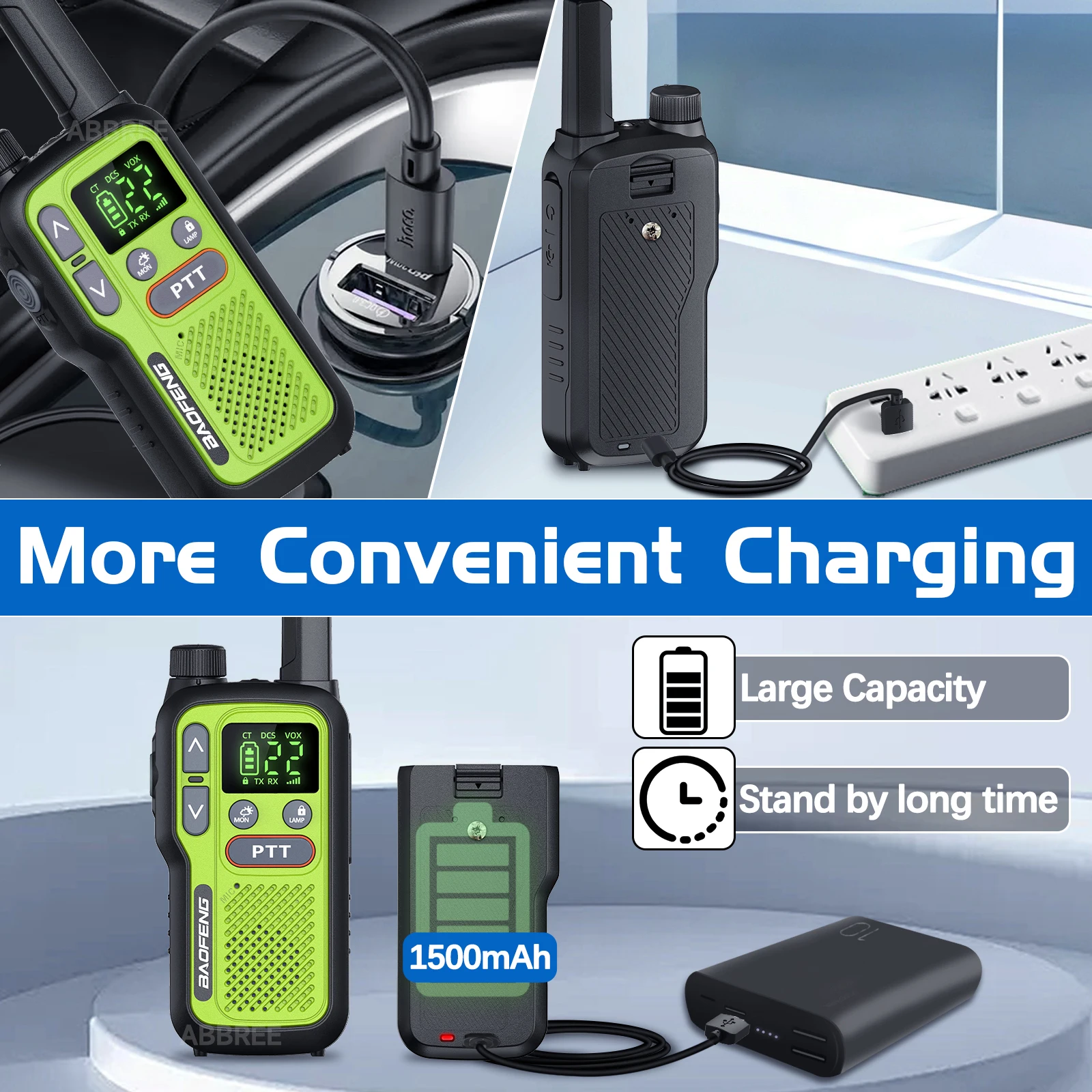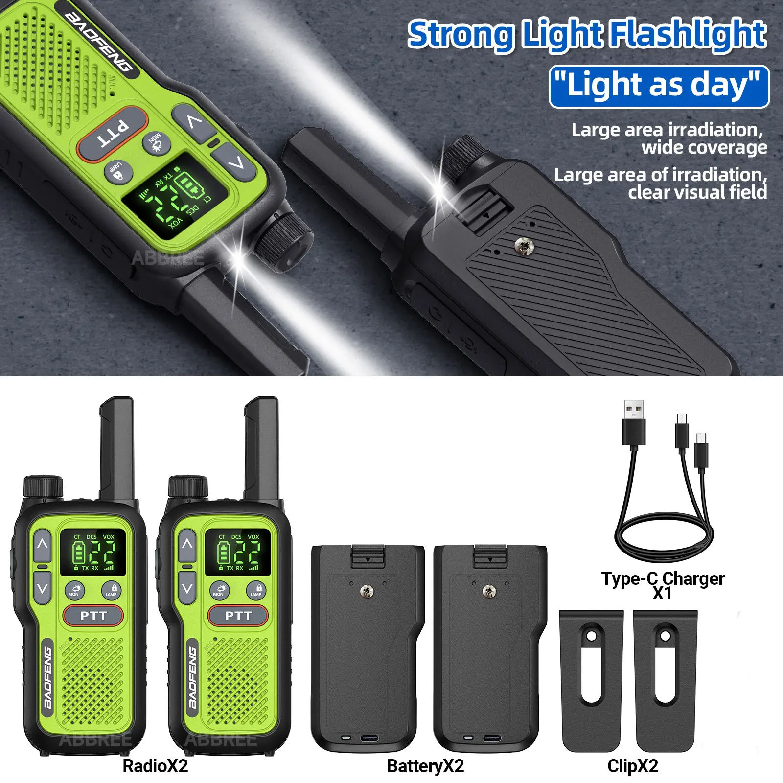 2PCS Baofeng BF-T18 Mini Walkie Talkie Long Range PMR FRS Dual PTT Zwei Weg Radio Typ-C Ladegerät NOAA Service Für Reise Camping - TopDealBox