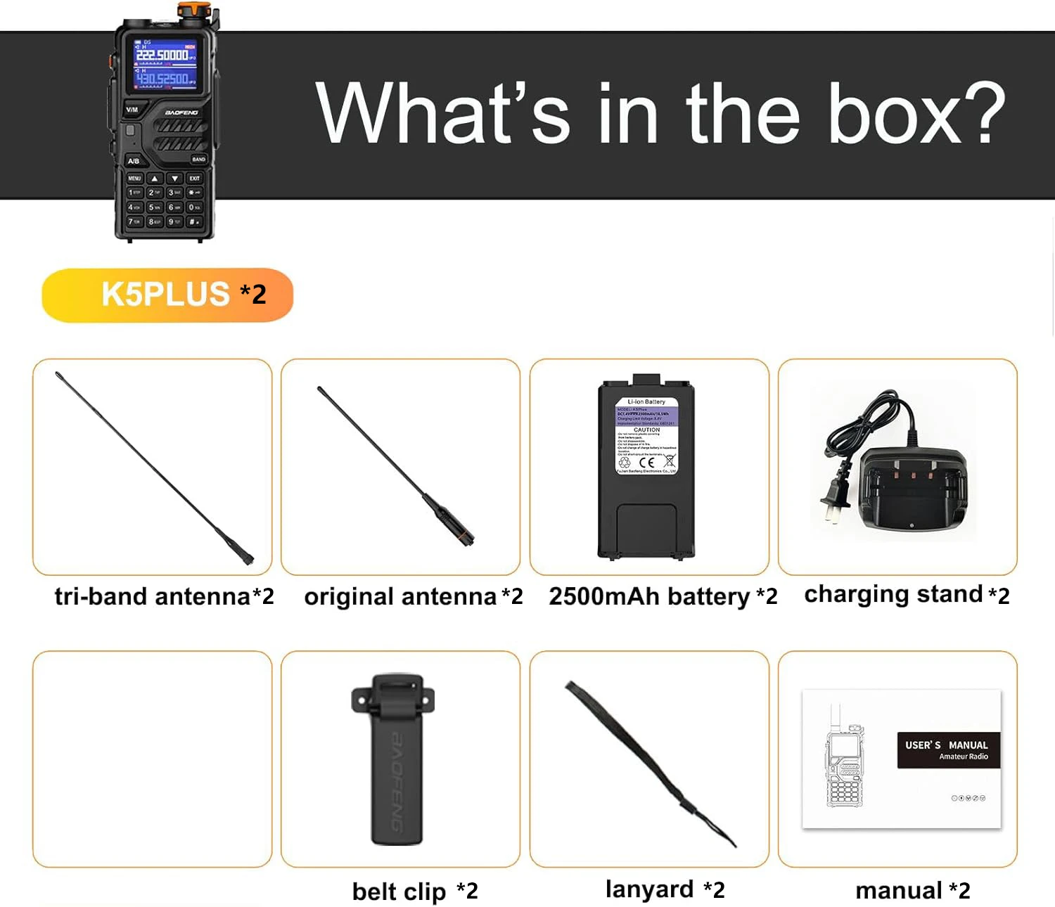 ♡Schnellansicht2PCS BAOFENG 5RX Amateurfunk 5W VHF 1,25M UHF Tri-Band Walkie Talkies One Key Frequency AirBand Chirp kompatibel34.19 EUREUR 133.67Heiß★★★★★★4.9