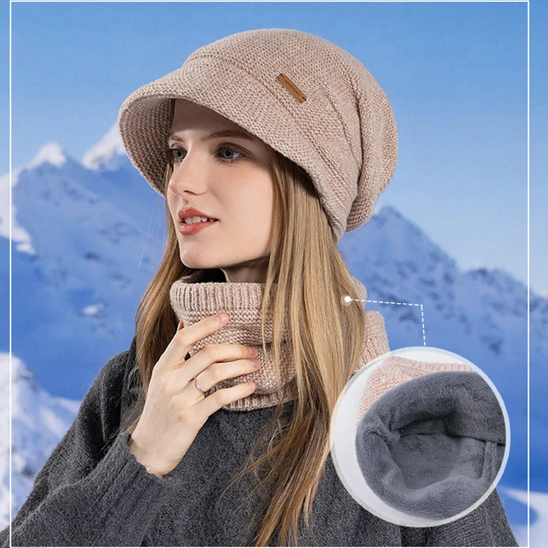 ↑2Pcs Frauen Winter Hut Schal Set Plüsch Futter Frau Gestrickte Hut Hals Wärmer Anzug Teenager Mädchen Kappe Set Herbst baskenmütze Hüte - TopDealBoxWinter-Reitmütze für Damen, Kapuze, Schal, Maske und Ohrabdeckung, dick, thermisch, winddicht, für Elektroroller, Outdoor, Radfahren, Wärme