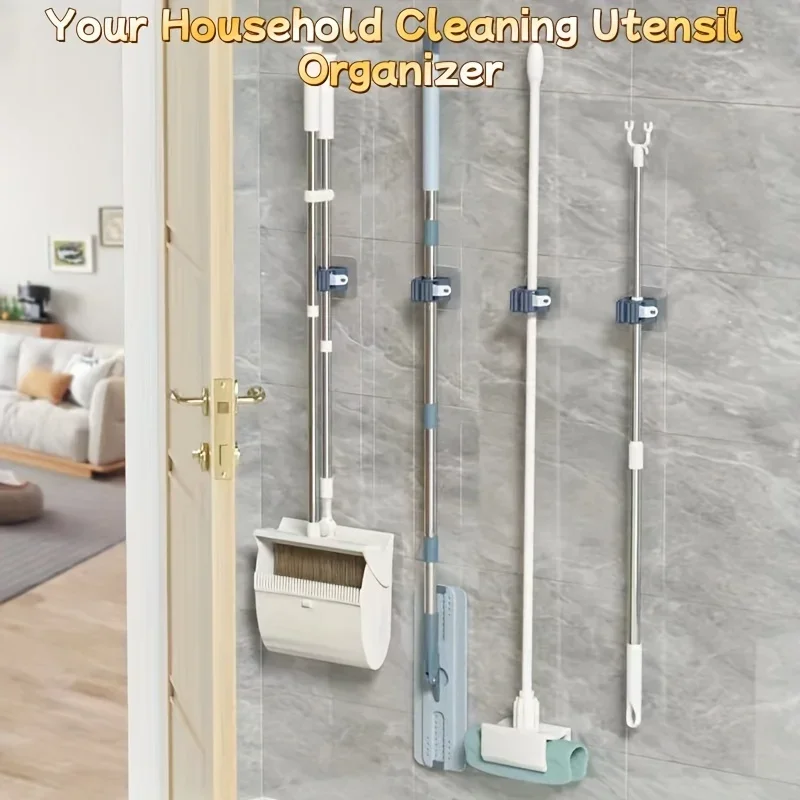 2PCS Home Storage Rack Bad Saug Hängen Rohr Spurlose Haken Wand Montiert Organizer Mop Halter Wasserdichte Besen Aufhänger - TopDealBox