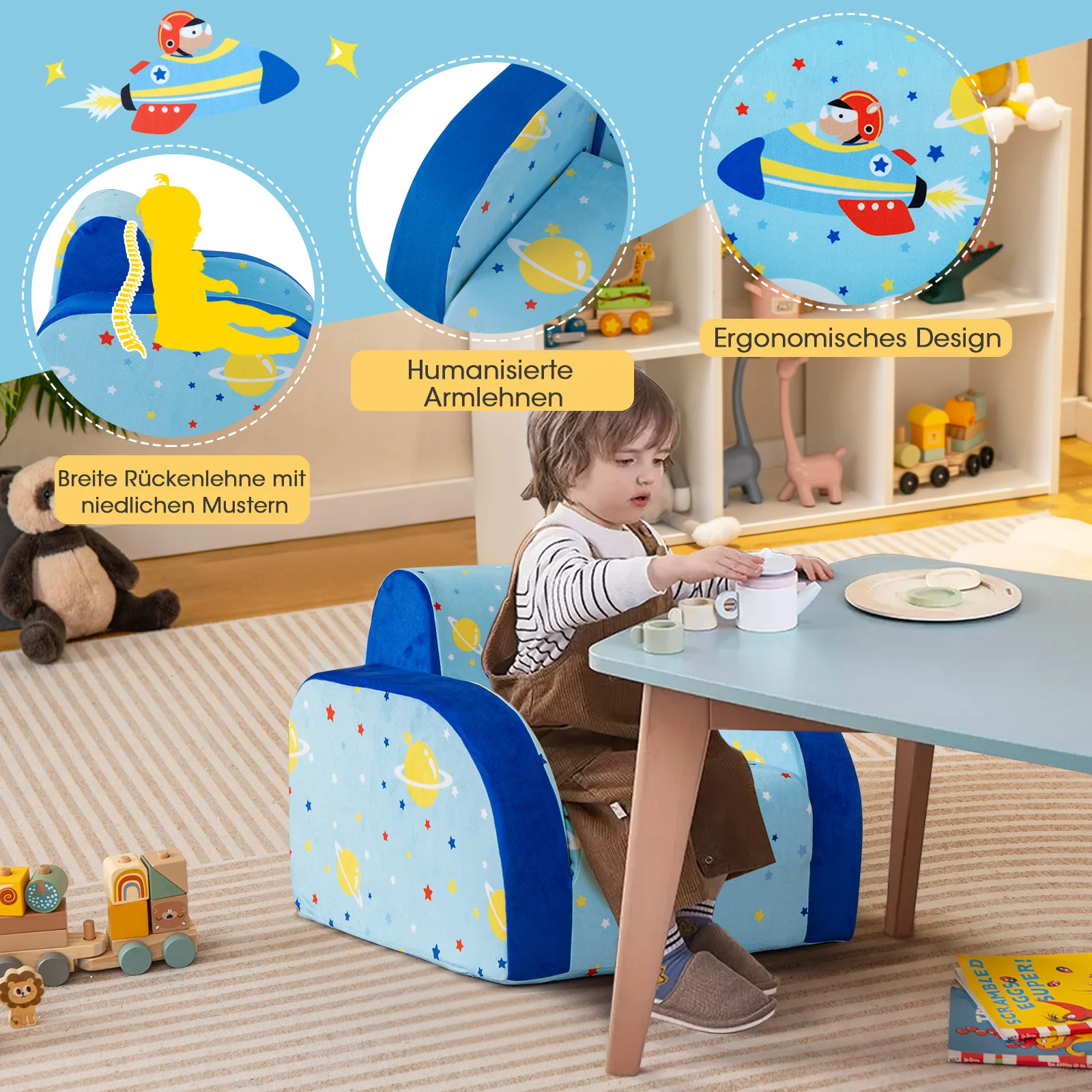 3 in 1 Kindersofa Klappbar,Kindersessel gepolstert aus Samtstoff, Kinderschlafsofa mit Abnehmbarer Schutzhülle, Kindercouch - TopDealBox