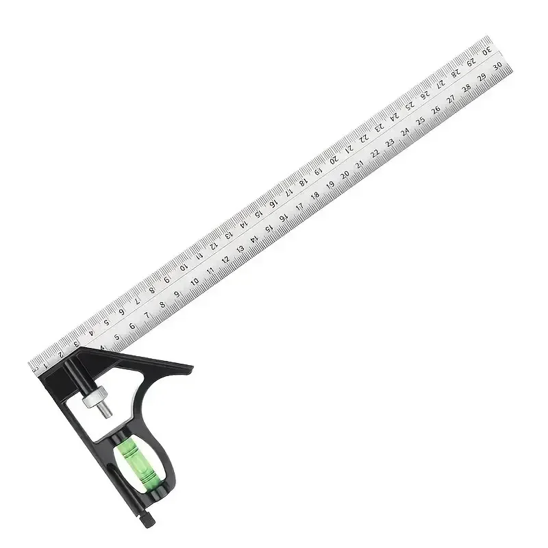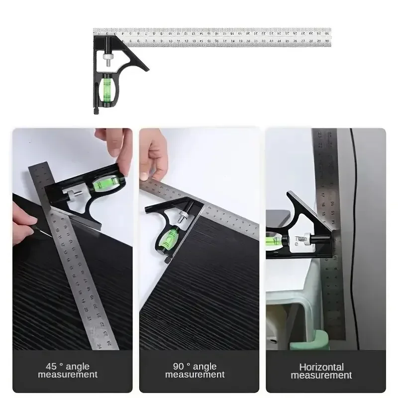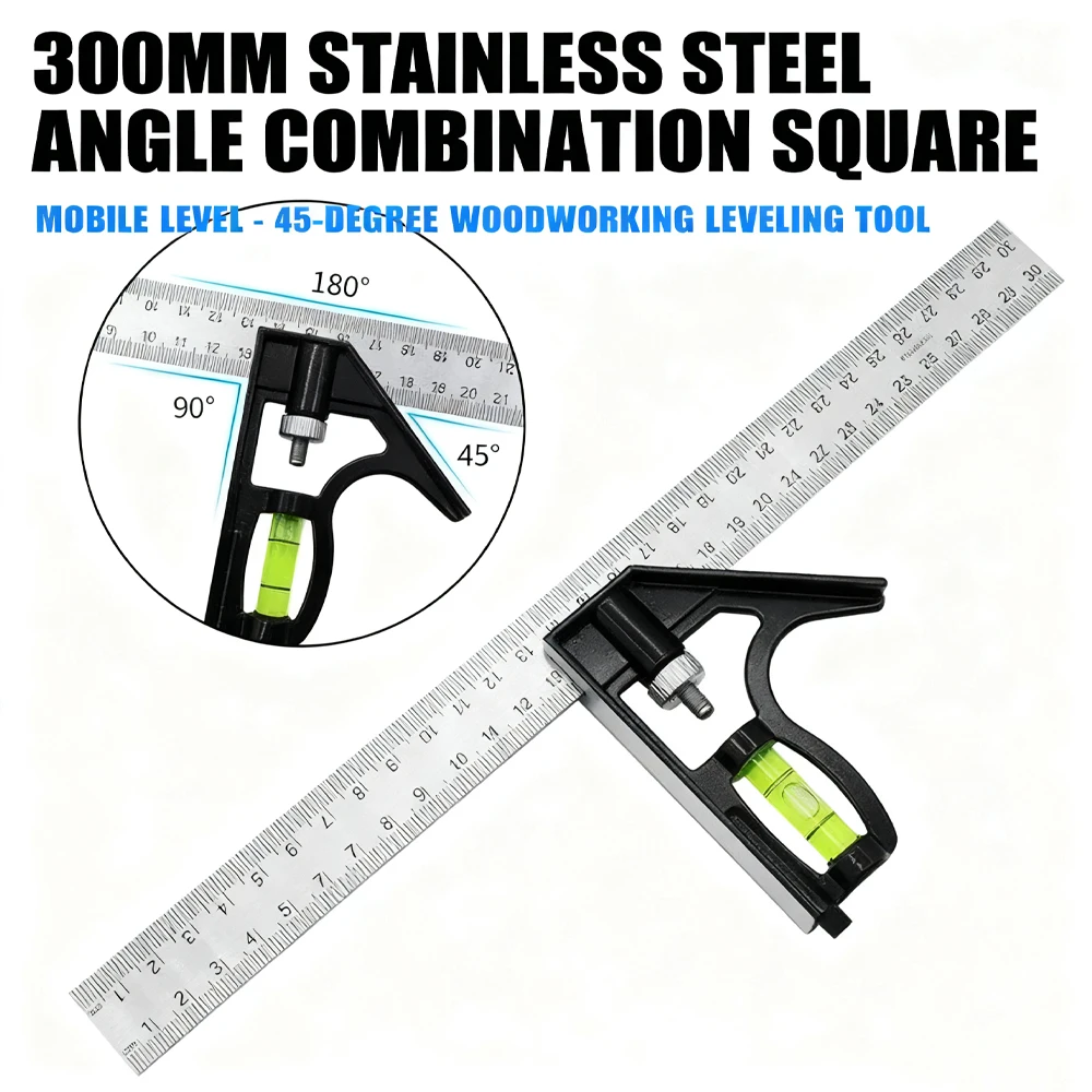 300 mm Edelstahl-Winkelkombination, quadratisches Lineal, mobil, horizontal, beweglich, 45 Grad rechts, Schreiner, Holzbearbeitung, Wasserwaage - TopDealBox