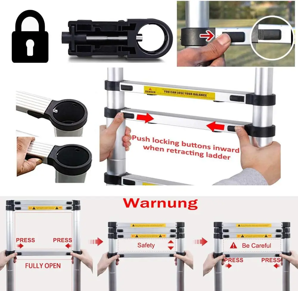 ♡SchnellansichtSucceBuy Teleskopleiter, 12,5 Fuß Aluminium, Ein-Knopf-Rückzug, zusammenklappbare Verlängerung, 375 Pfund Kapazität mit rutschfestem Gehäuse für Wohnmobile zu Hause73.39 EUREUR 308.00Heiß★★★★★4.4