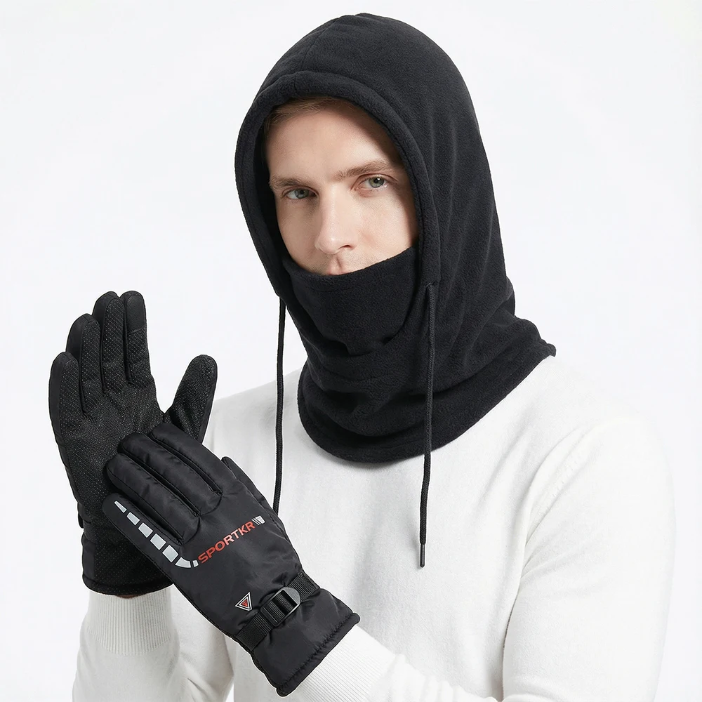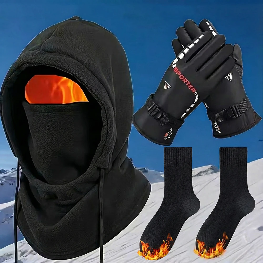 3/4-teiliges Herbst-Winter-Wärmeset, integrierte winddichte Mütze mit Fleece-gefütterten Handschuhen und Socken, Winter-Outfit-Zubehör, Mode - TopDealBox
