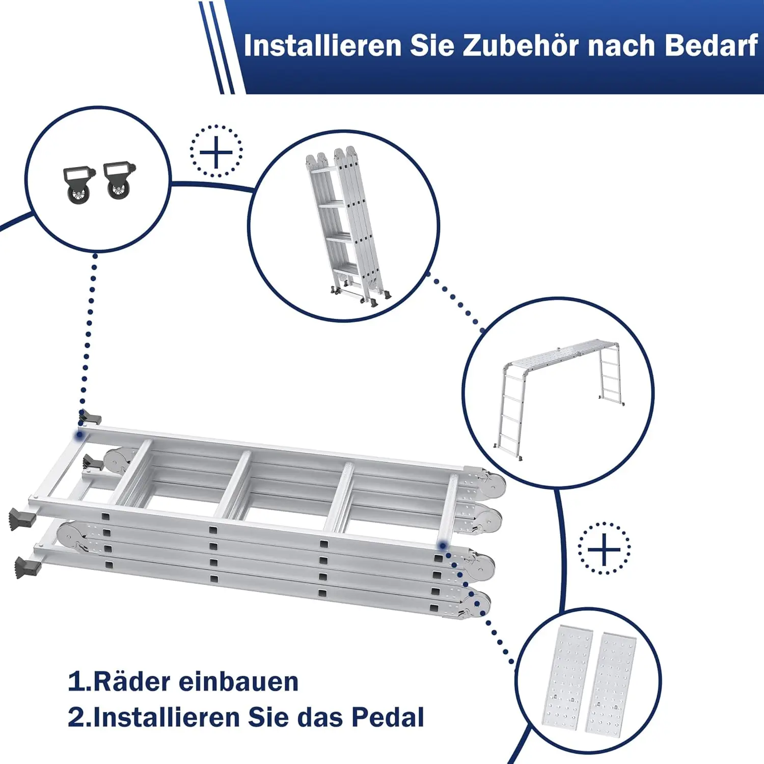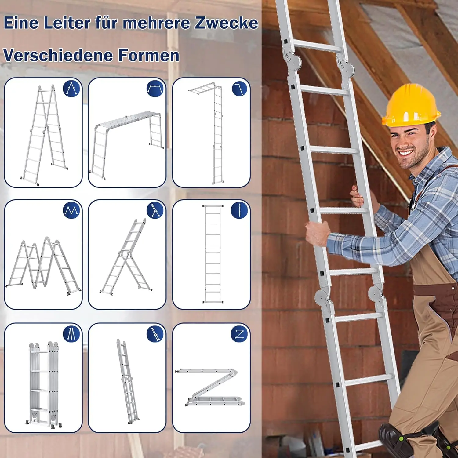 340cm Leiter Mehrzweckleiter Klappleiter Gelenkleiter mit Plattform Aluleiter Multifunktionsleiter Kombileiter 6 in 1 - TopDealBox