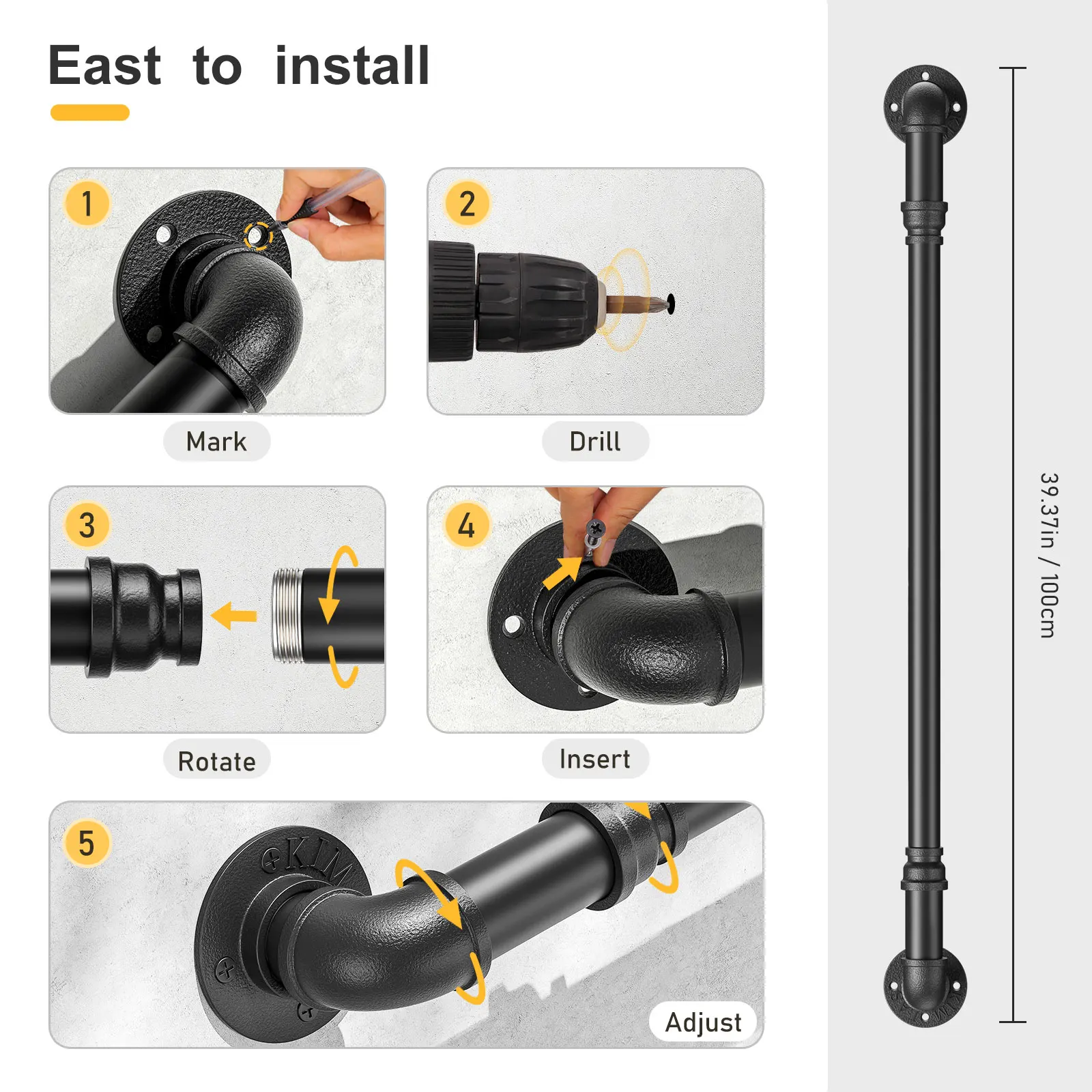 âĄSchnellansicht2m Wand halterung Industrie Eisen Loft Treppe Handlauf Edelstahl schwarz Rohrs chiene Innentreppe 110lbs TragfĂ€higkeit30.34 EUREUR 134.90HeiĂ