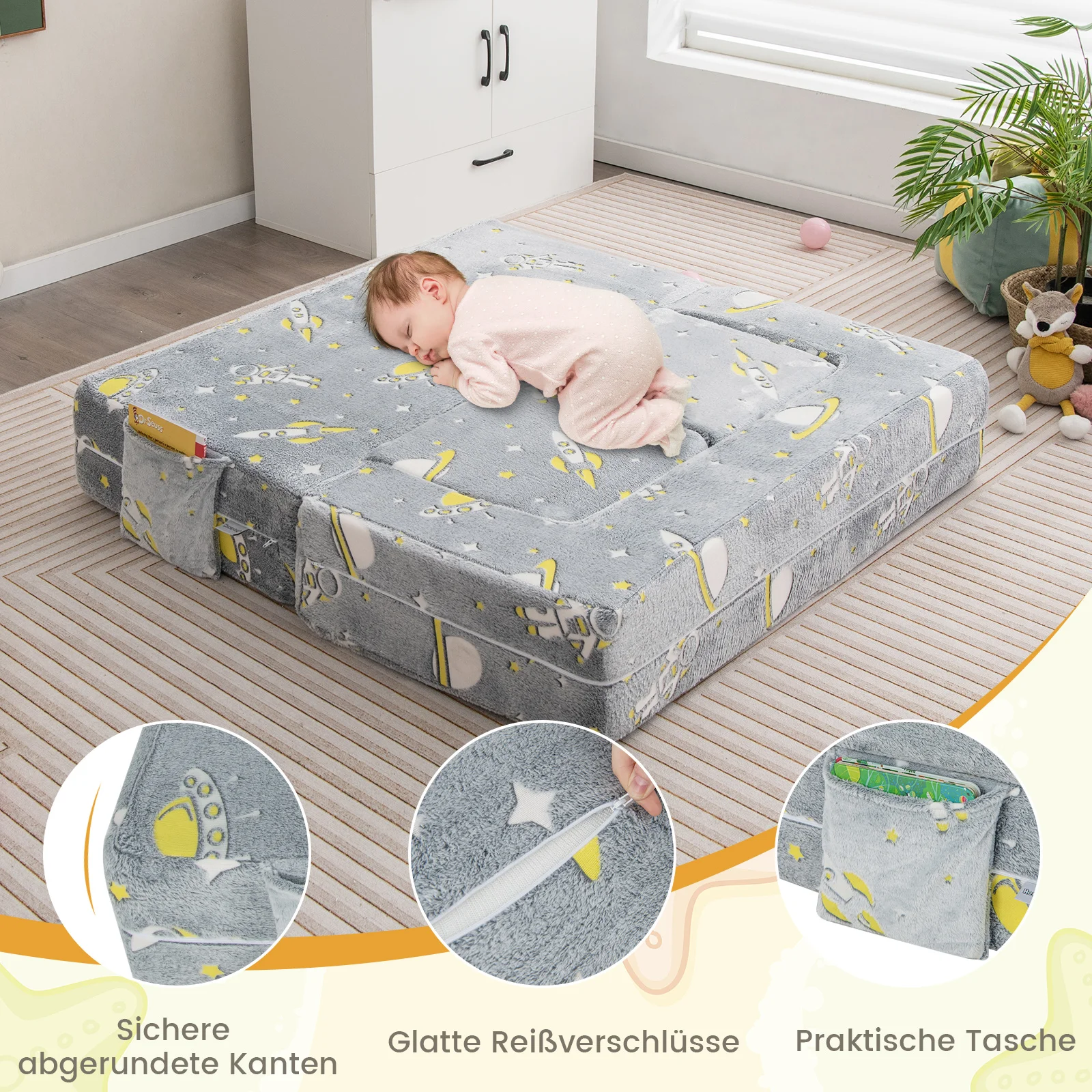 4 in 1 Kindersofa ausklappbar, Kindersessel im Dunkeln Leuchtend, Kinder Schlafsofa mit 2 Ottomanen & Seitentasche - TopDealBox