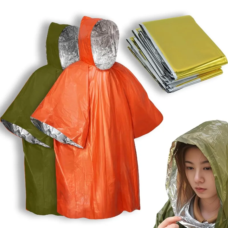 4 Stück Notfall-Regenmäntel halten 90 % der Körperhitze wiederverwendbar, wetterbeständig, für Camping, Wandern, Notfallbedarf und Überlebenssets - TopDealBox