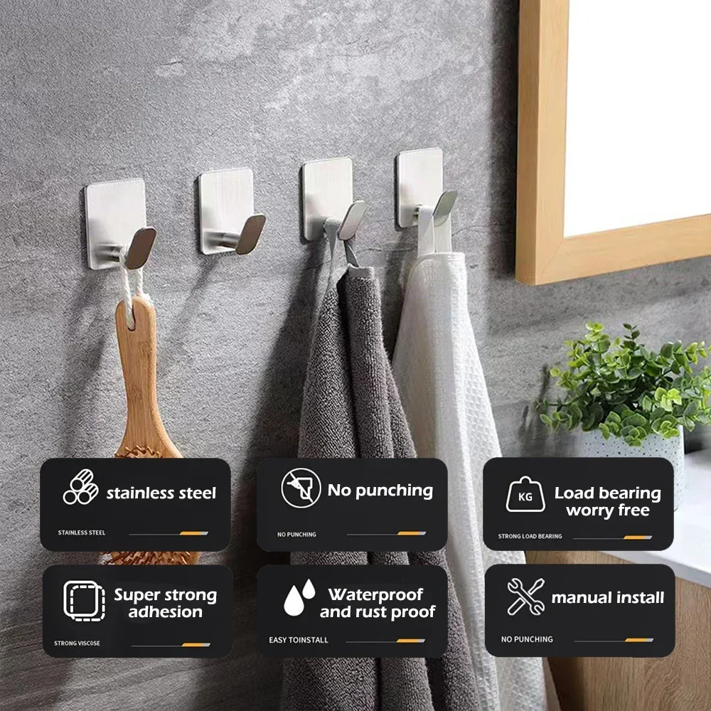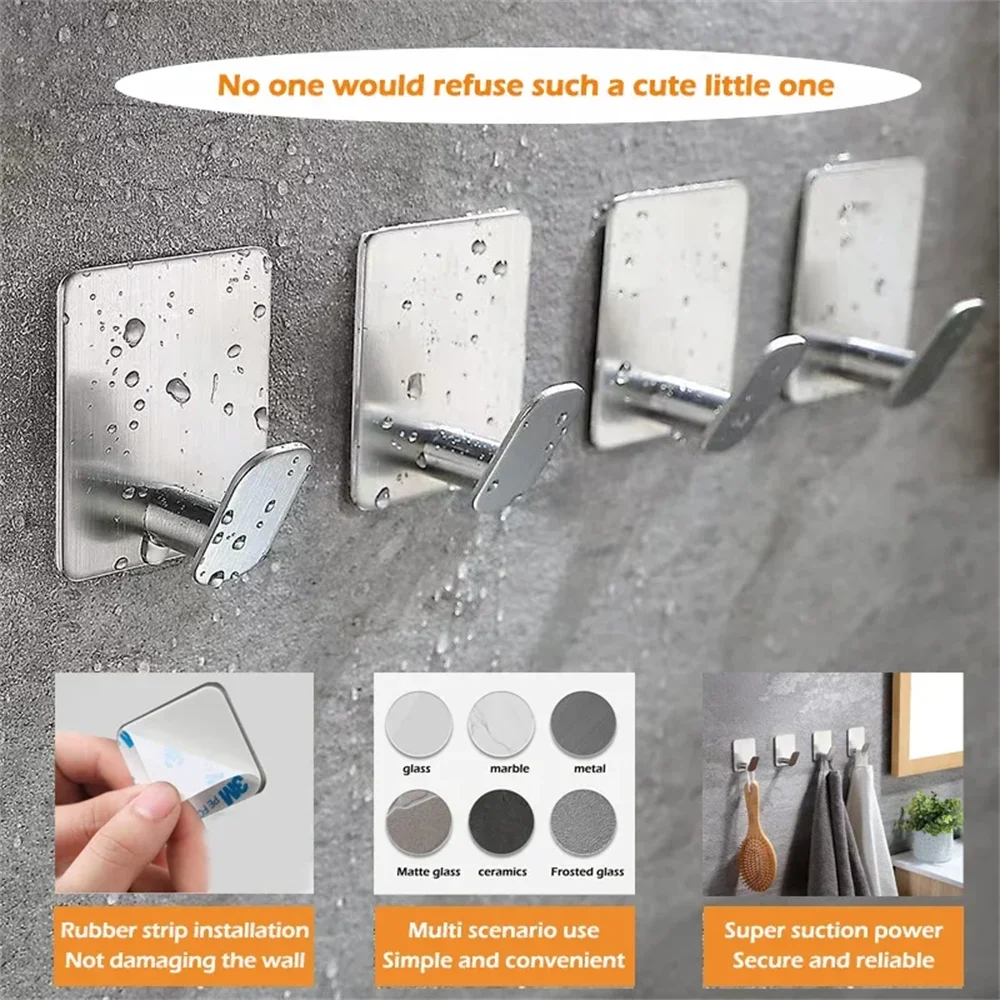 4/1 Stück Edelstahl Bademantel-Haken Selbstklebende Wandhaken Handtuchhalter Badezimmer Küche Hardware Mehrzweck-Aufhängehaken - TopDealBox