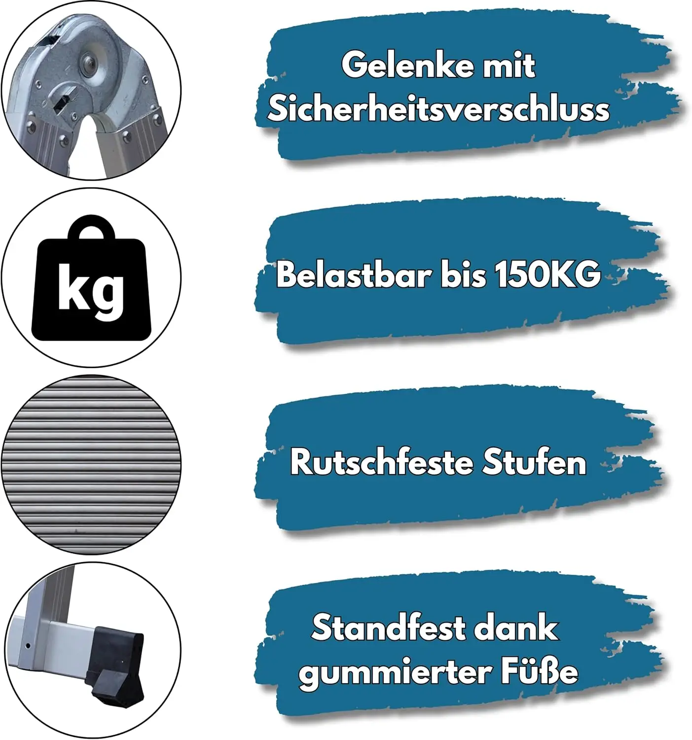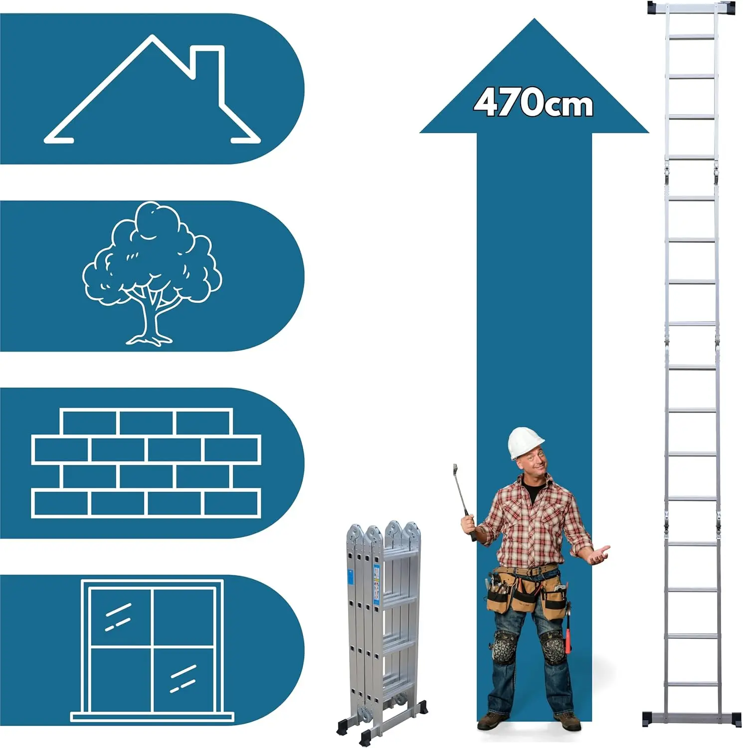 ↑4,7 m Klapp leiter, 4 Stufen x 4, multifunktional, maximale Belastung 150kg, ausziehbar, Teleskop-Trittleiter, Mehrzweck. - TopDealBox3,4 m Aluminium leiter, 4x3 Stufen, 12 Stufen insgesamt, 6 Positionen, bis 150kg, tüv/gs zertifiziert, rutsch fest, stabil, robust, für Haus