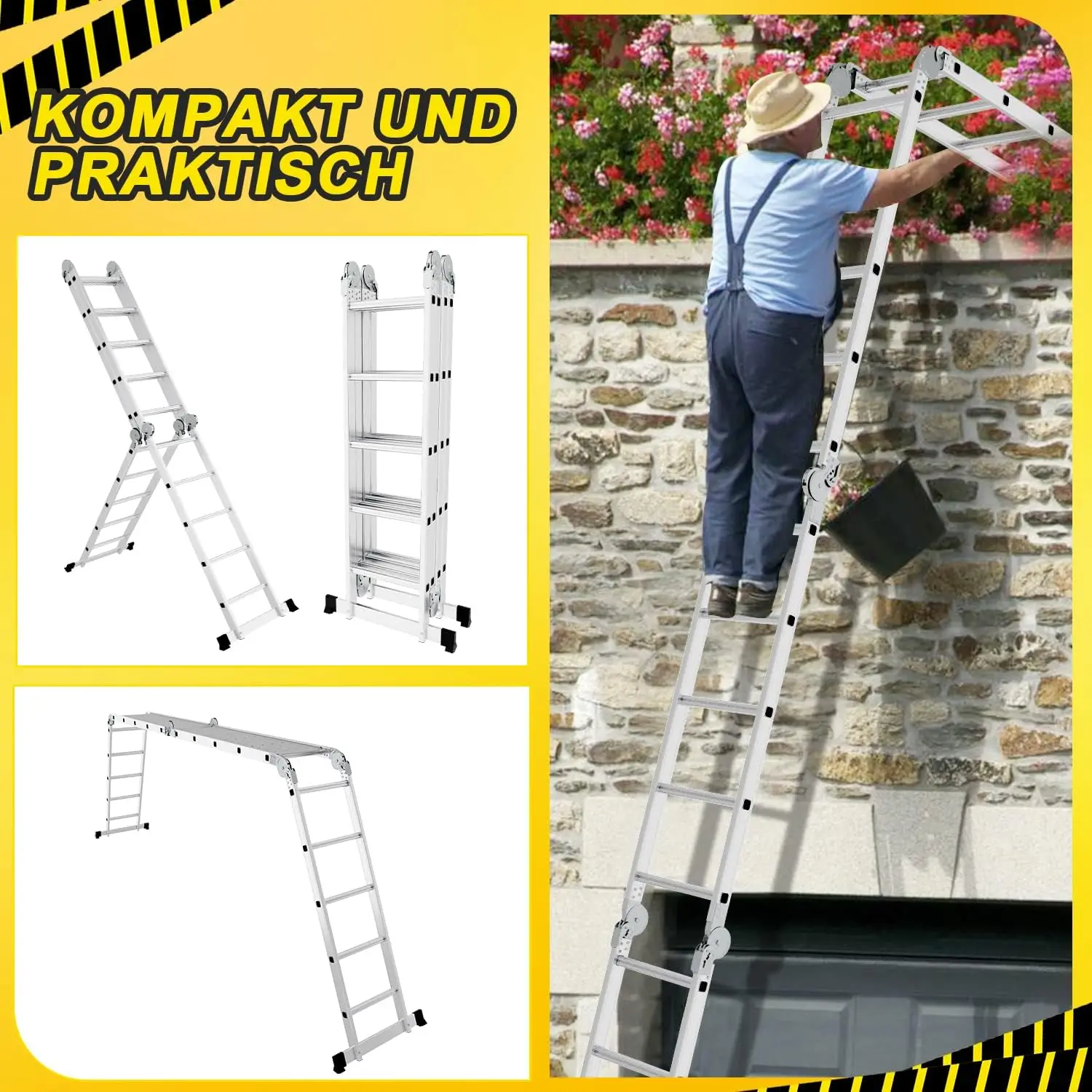 4x5 Stufen Mehrzweckleiter 5,82 m 7-in-1 Aluminium-Multifunktionsleiter bis 150 kg mit 2 Transportrollen und 2 Plattformen - TopDealBox