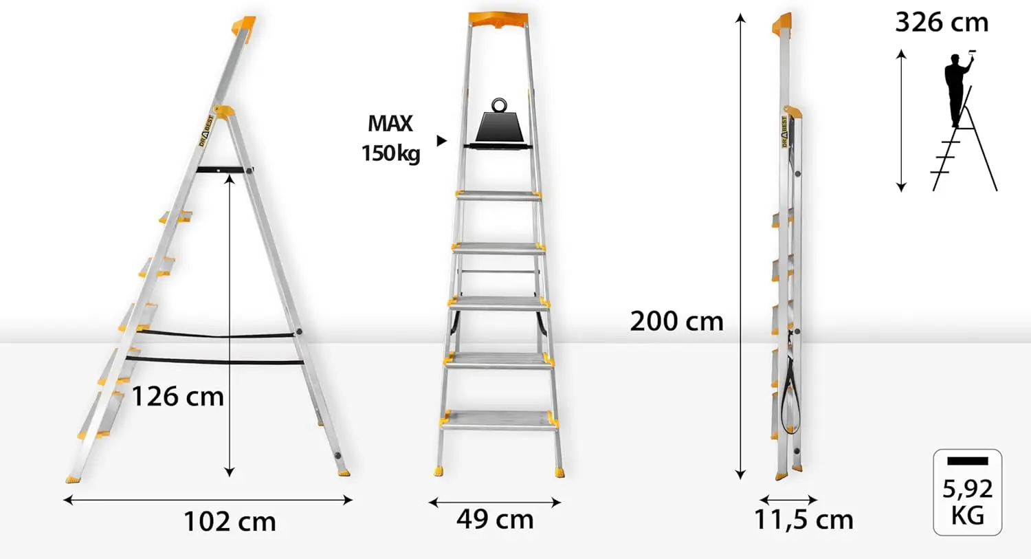 Startseite > Hauptverbesserung > leitern & Gerüste 6-stufige faltbare Aluminium leiter, robust mit Regal, 120mm breite rutsch feste Stufen. Geeignet für haus und arbeit, max last 150kg. (128 Versandinformationen