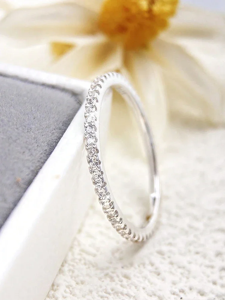925er-Sterlingsilber, modisch, glänzend, 1,4 mm, voller Zirkon, stapelbar, schlichter Ring für Damen, tägliche Party, personalisierter edler Schmuck - TopDealBox