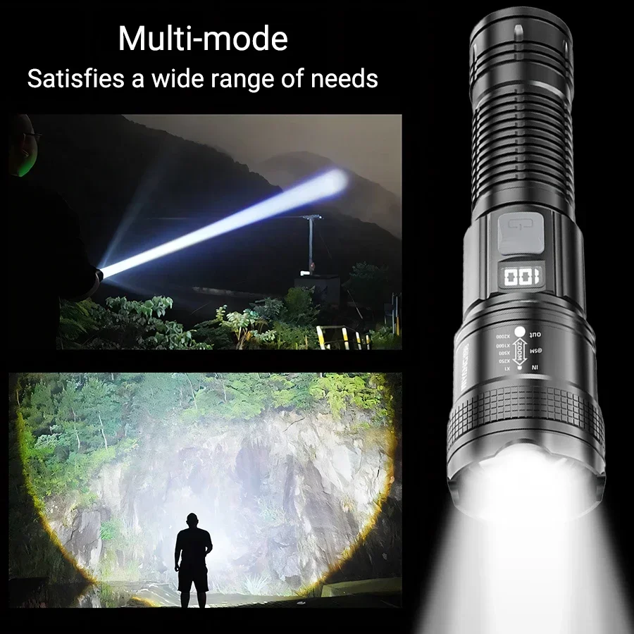 Superhelle LED-Taschenlampen, leistungsstarke wiederaufladbare Batterie, Display-Taschenlampe, taktische Zoom-Taschenlampe, Outdoor-Camping, Angellampe - TopDealBox