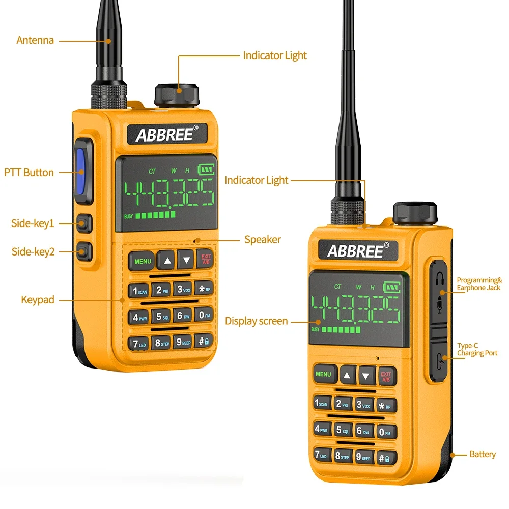 ABBREE AR-518 Vollband-Walkie-Talkie, Airband, kabellose Kopierfrequenz, Typ-C-Ladegerät, hohe Leistung, 128 Kanäle, VOX, SOS, Zwei-Wege-Radio - TopDealBox