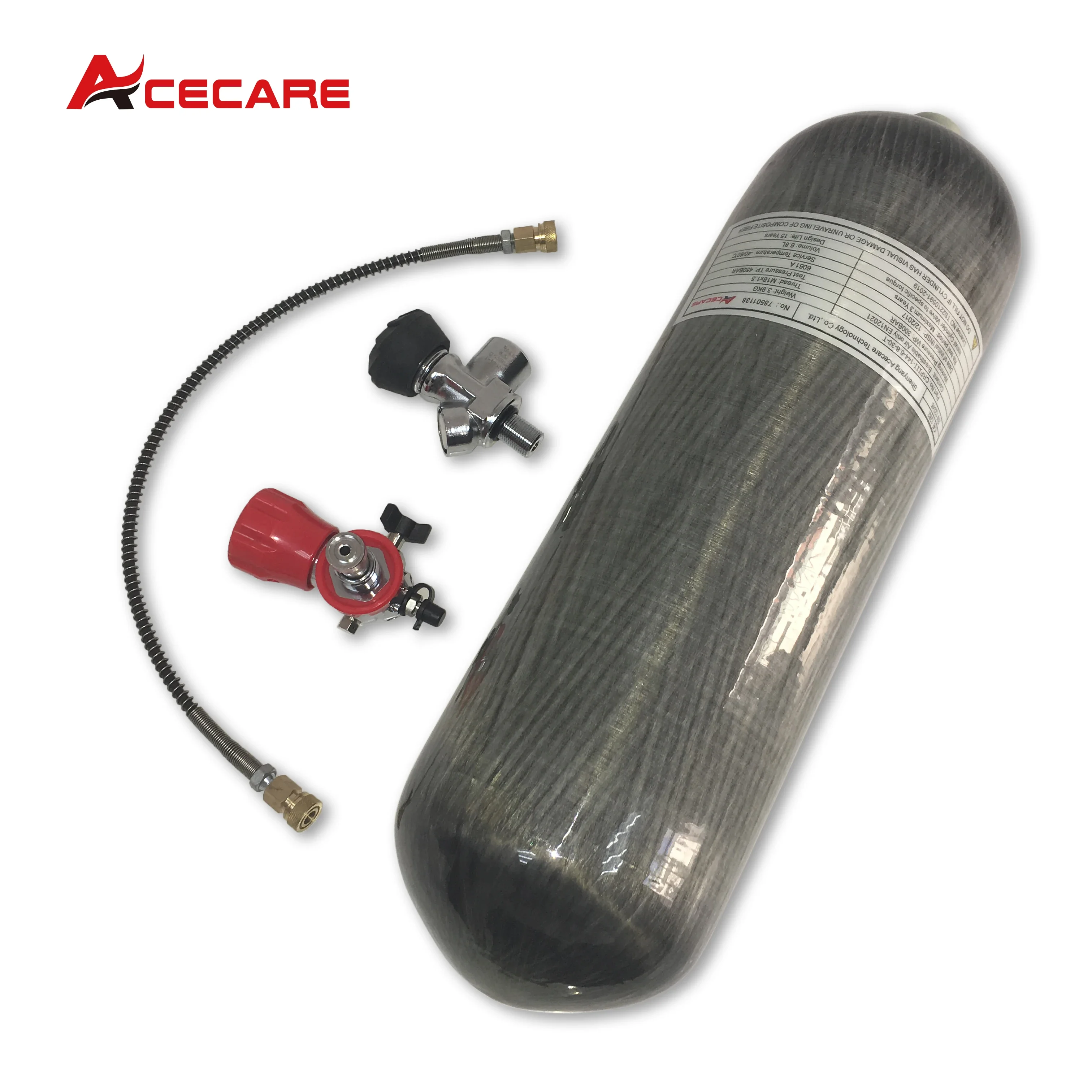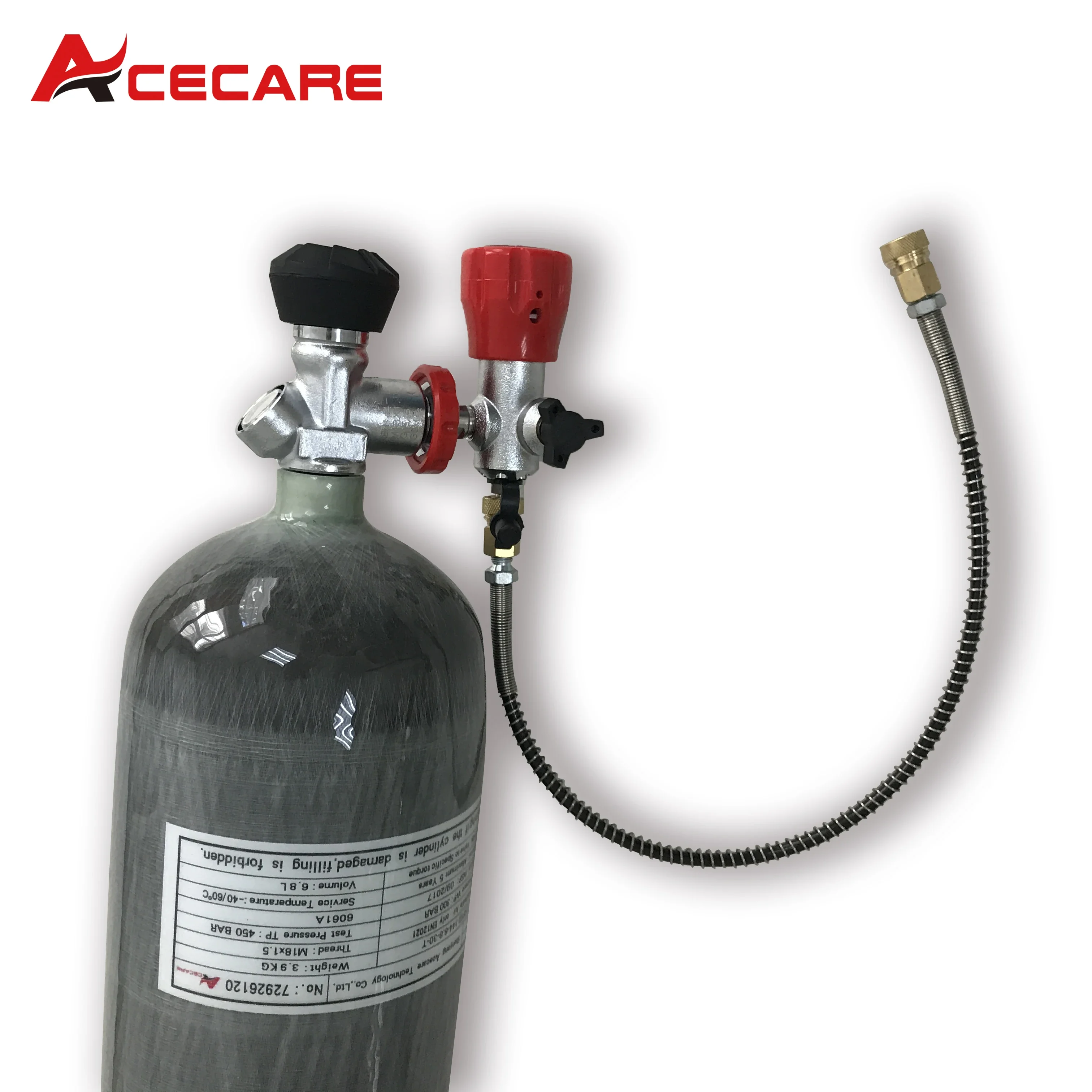 ACECARE 300bar 4500psi 6,8L Kohlefaser-Zylinder-HPA-Hochdruckflasche mit Ventilfüllstation zum Tauchen M18 * 1,5 - TopDealBox
