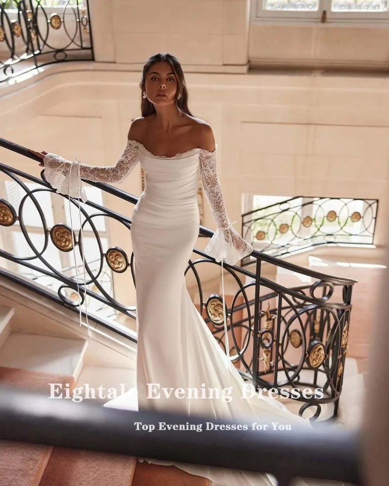 ♡SchnellansichtEightale Luxus Brautkleid Oansatz Satin A-Line Angepasst Weiß Elfenbein Perlen Falten Gericht Zug Brautkleid Vestido De Noiva93.39 EUREUR 1334.16Heiß★★★★★★4.8