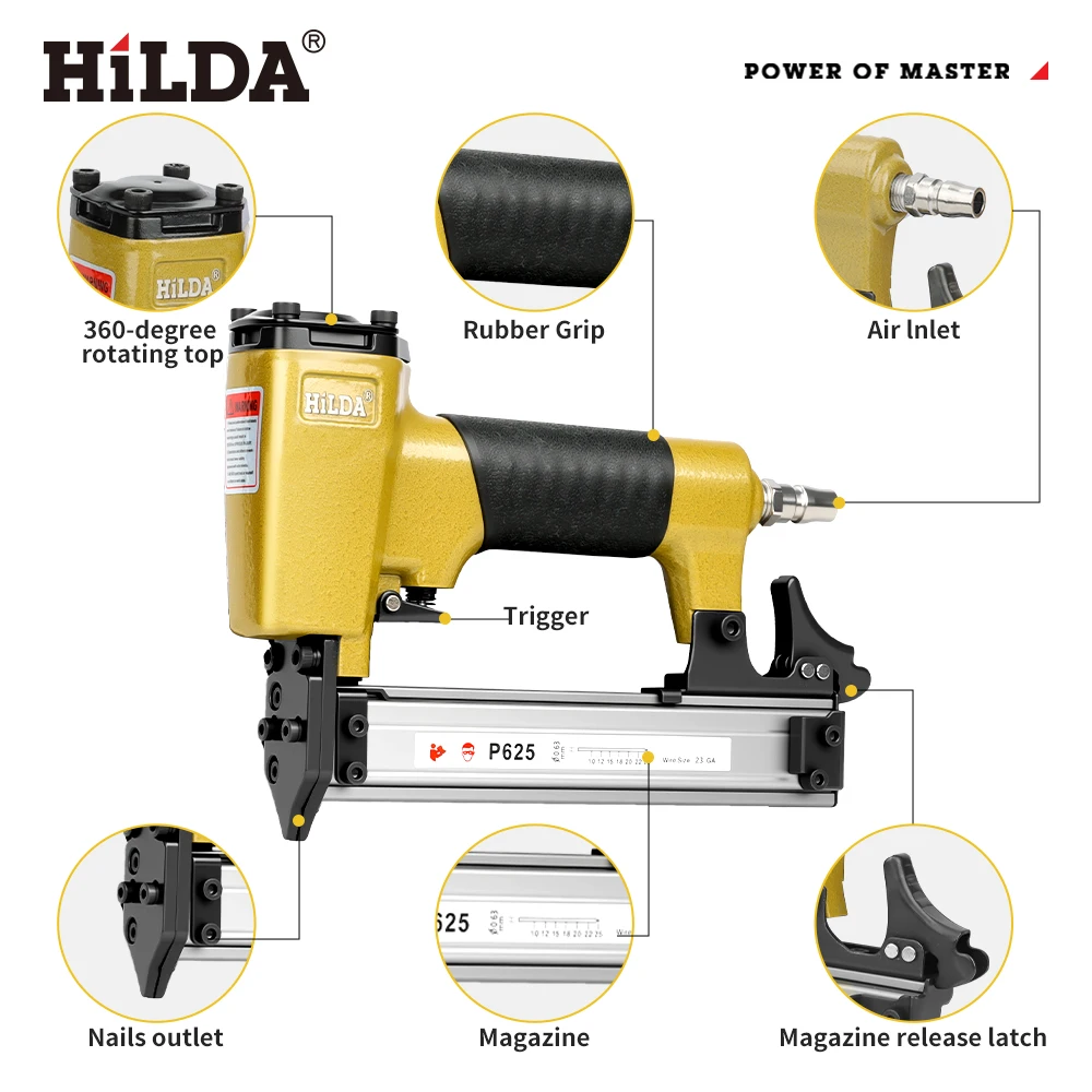 Air Pin Nailer P625 Luftbetriebene Tackerpistole, langlebig, mit hitzebeständigem Gehäuse für hochwertige Möbel und Kunsthandwerk, pneumatisches Werkzeug - TopDealBox