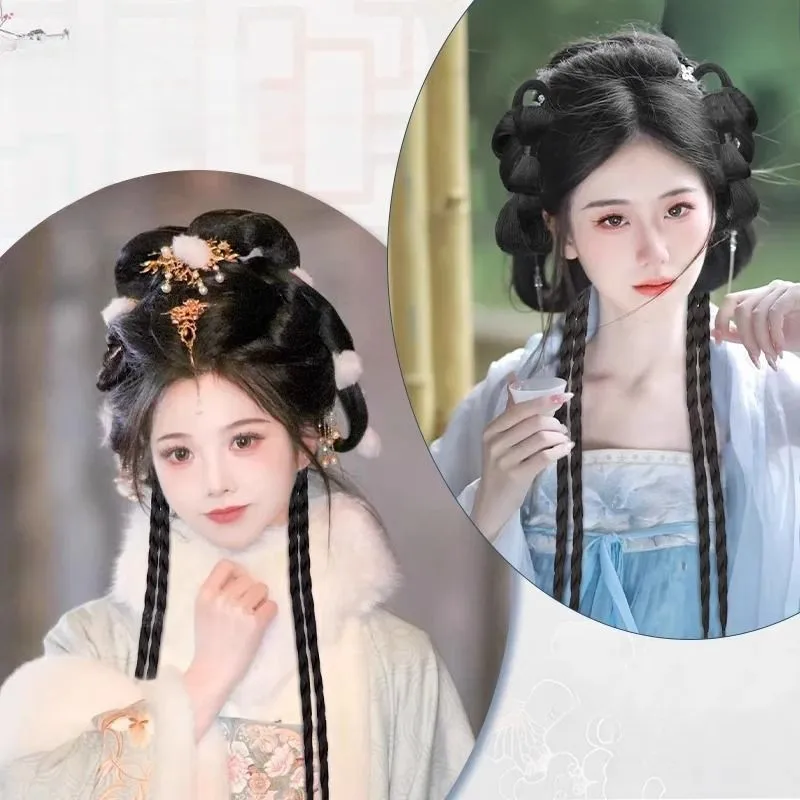 Antiker Stil Haarnadel Synthetische Zöpfe Perücke Frauen Hanfu Integrierter Stil Antiker Kostüm Kopfschmuck - TopDealBox
