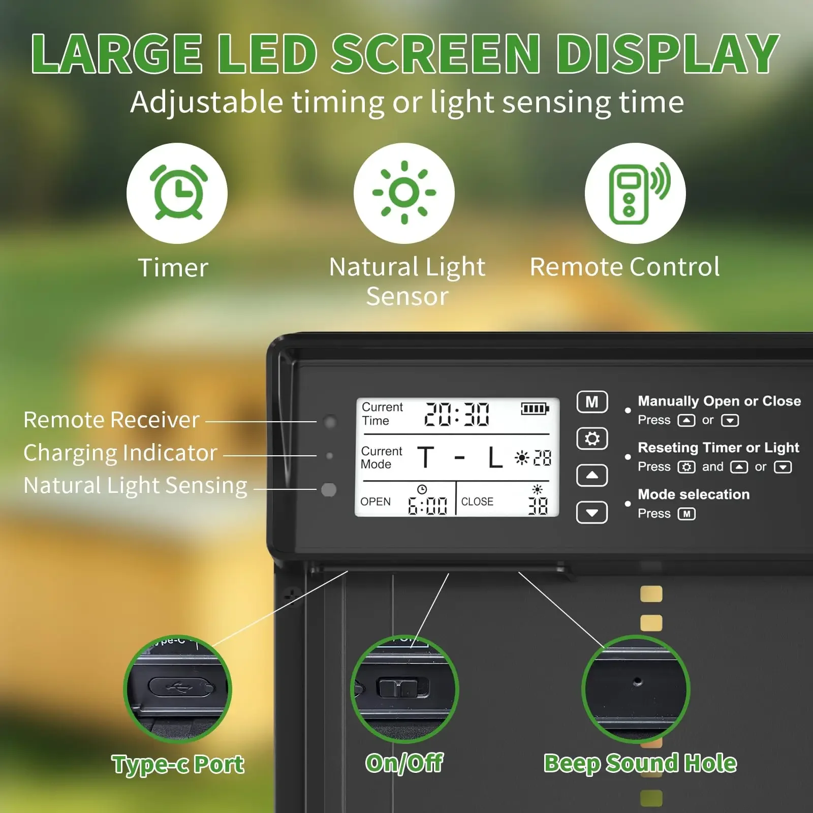 ♡SchnellansichtAutomatische Hühnerstalltür, solarbetrieben, LCD-Display, automatische Hühnertür mit Timer, Hühnertür aus Aluminiumlegierung mit Fernbedienung44.59 EUREUR 746.78Heiß★★★★★★4.9