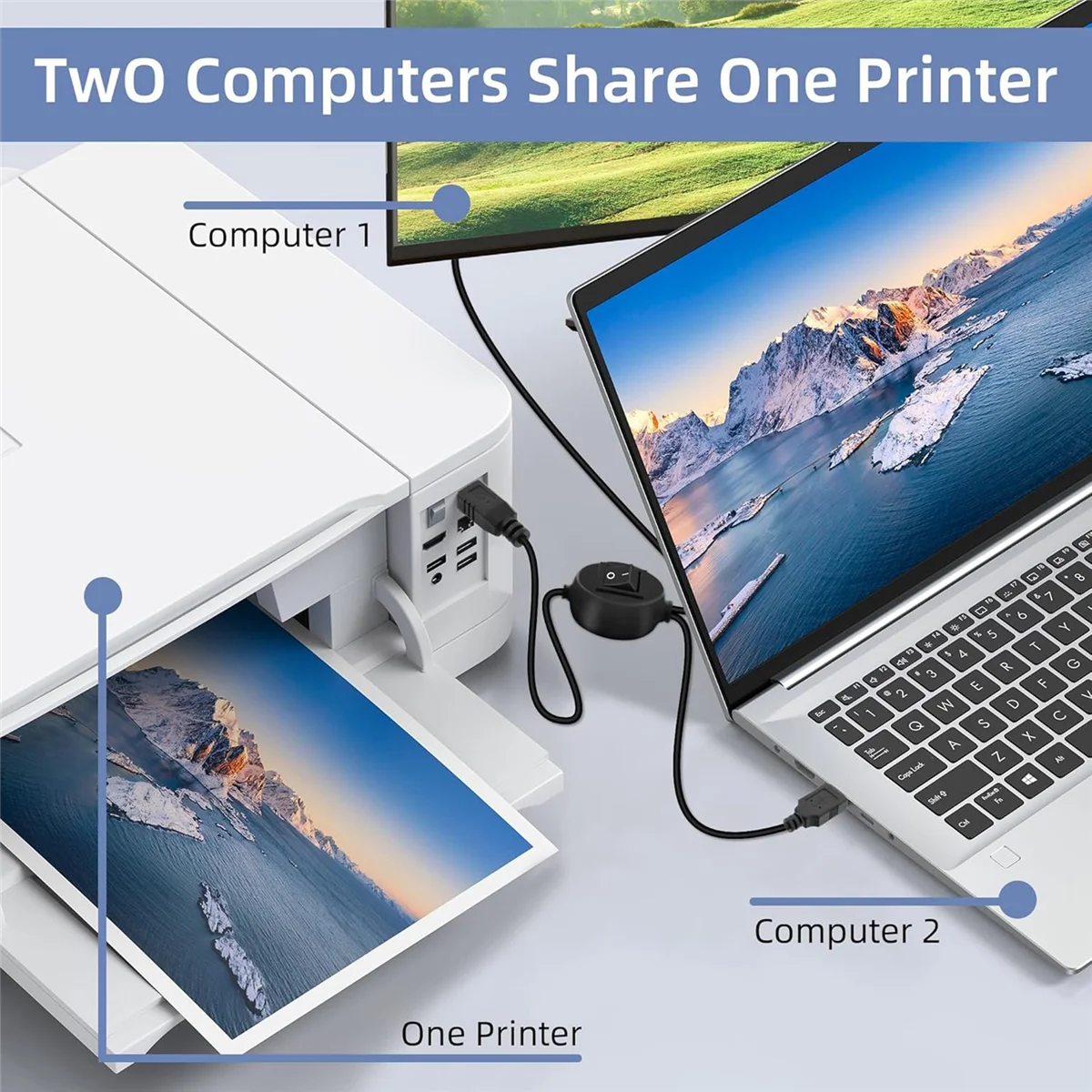 BABQ 2-in-1-Druckerkabel, USB A auf B Stecker auf Stecker, Druckerkabel für HP, Canon, Samsung, Drucker-Splitter für zwei Computer A - TopDealBox