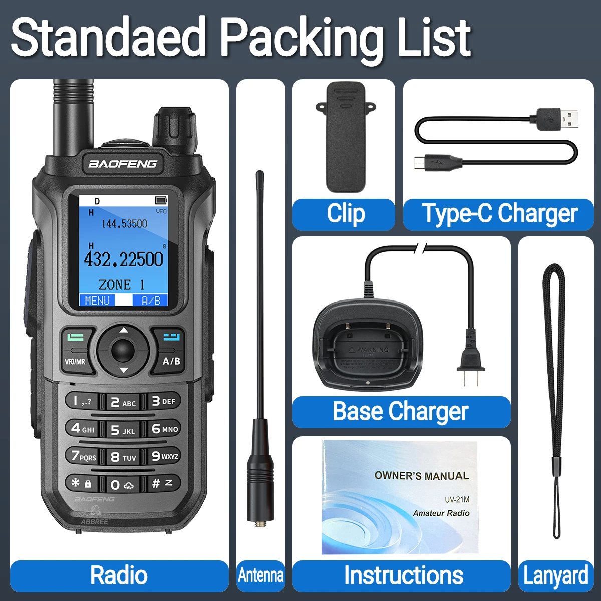 BAOFENG UV-21 PRO V3 Walkie Talkie Multi Band Bluetooth App Programmierung Drahtlose Kopierfrequenz Typ-C Air Band Long Range Radio - TopDealBox