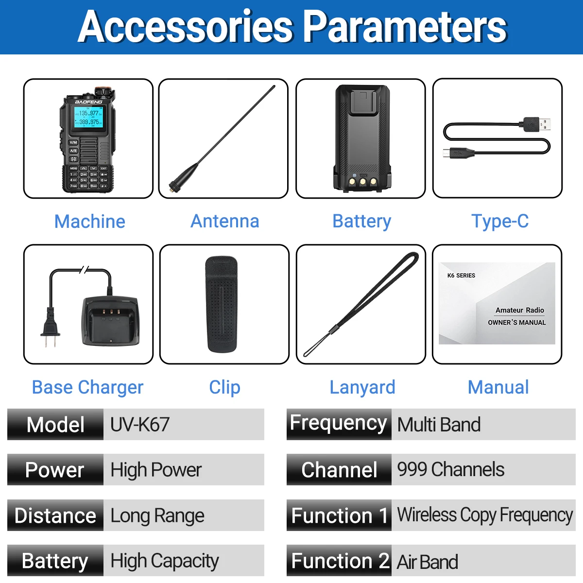 ♡SchnellansichtBaofeng UV-K61 Walkie Talkie Multi Band Wireless Kopierfrequenz 999CH Typ-C UHF VHF DTMF NOAA FM UV-5R Verbessertes UV-K6 Amateurfunk24.39 EUREUR 543.18Heiß★★★★★★4.5