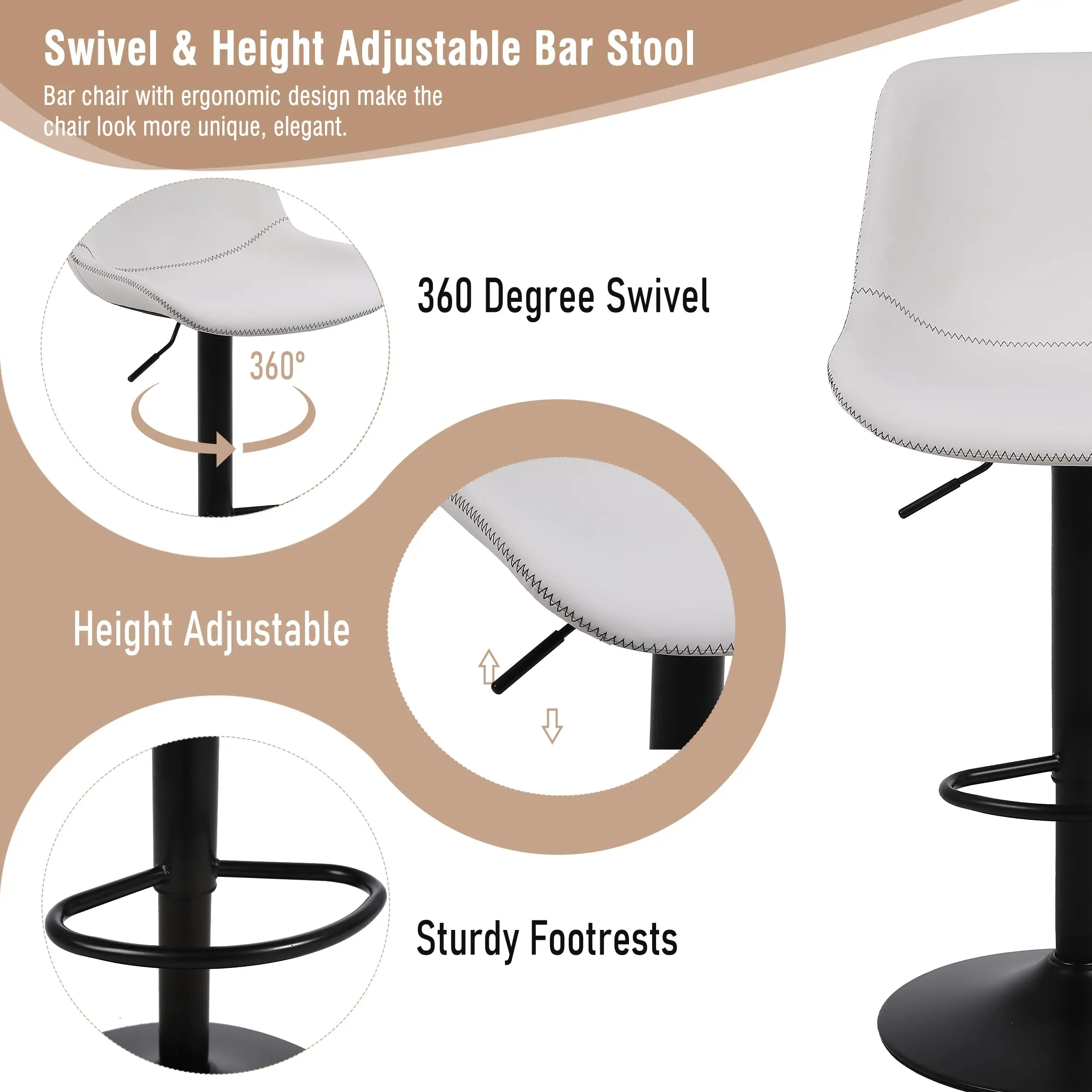 ♡Schnellansicht2 Stück/Set moderner Drehbarstuhl, 360 ° Verstellbarer Barhocker in Thekenhöhe, mit Rückenlehne ohne Handläufe, geeignet für Bar,90.39 EUREUR 1455.56Heiß★★★★★5.0