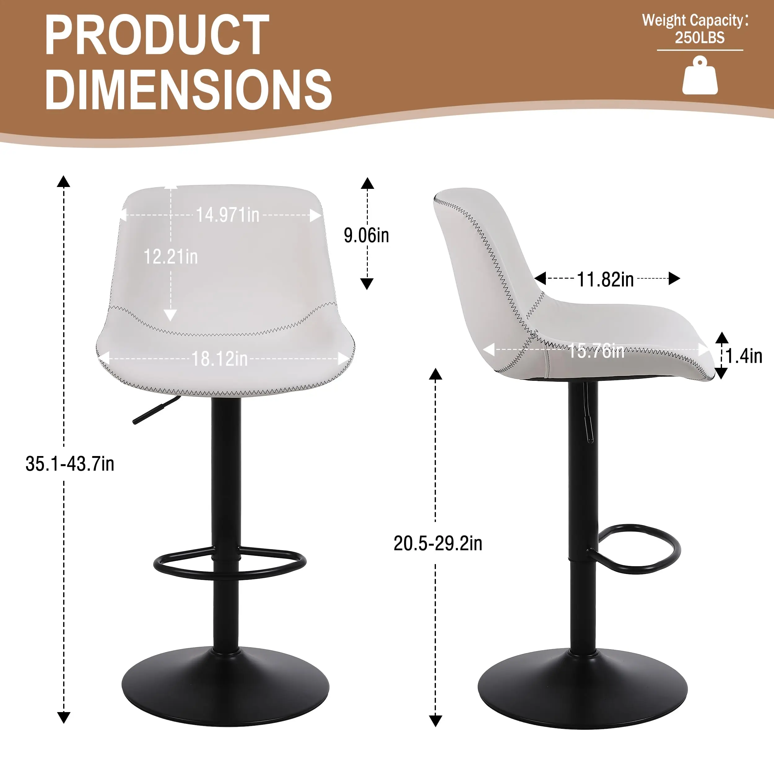 ♡SchnellansichtRalex-Stuhl Barhocker 2er-Set, drehbare Barhocker in Thekenhöhe mit Rückenlehne, verstellbare Barstühle aus PU-Leder, Braun93.99 EUREUR 188.93Heiß