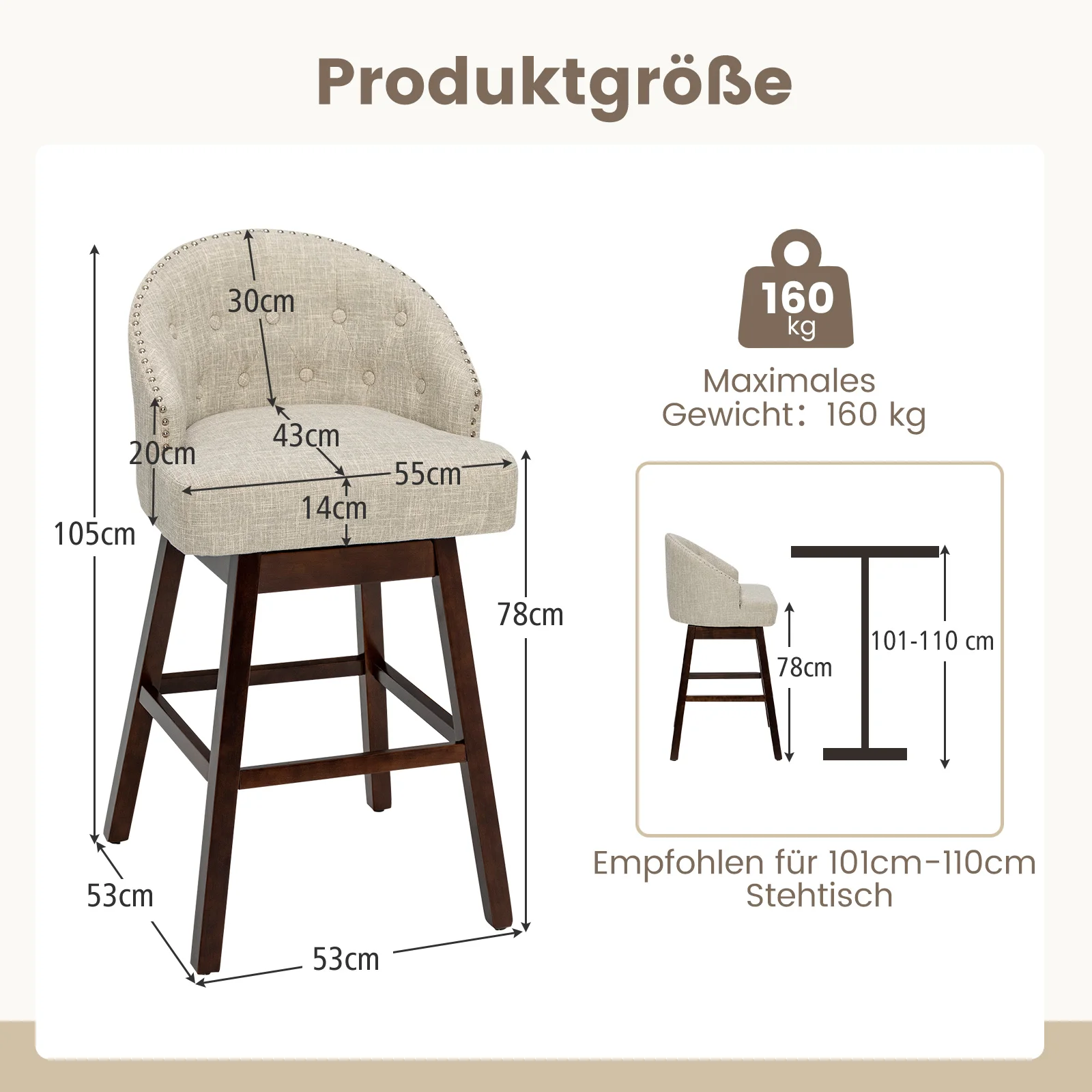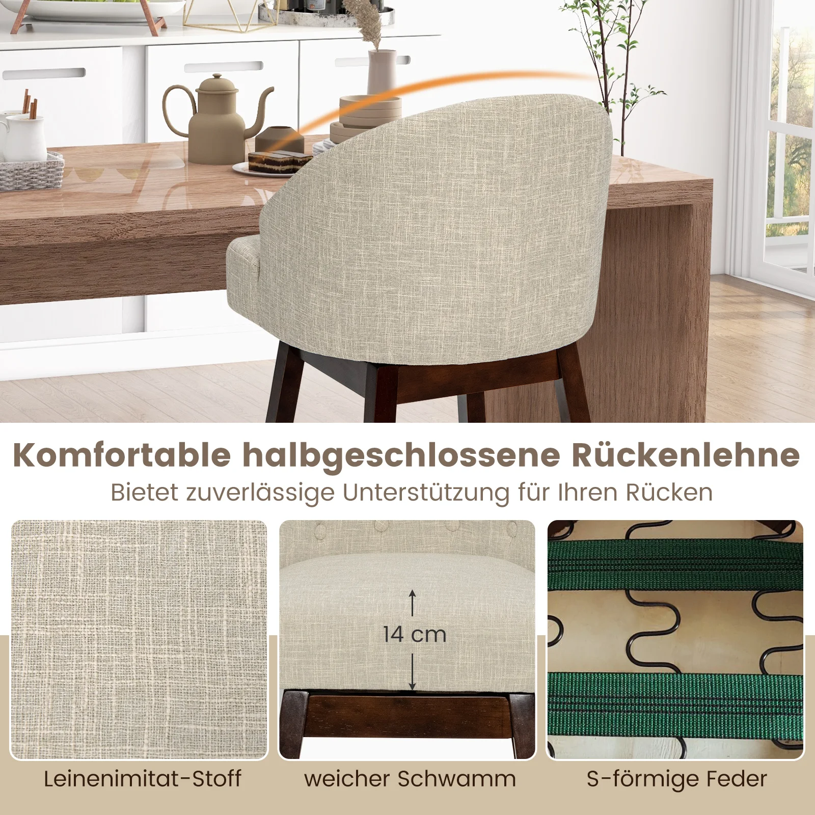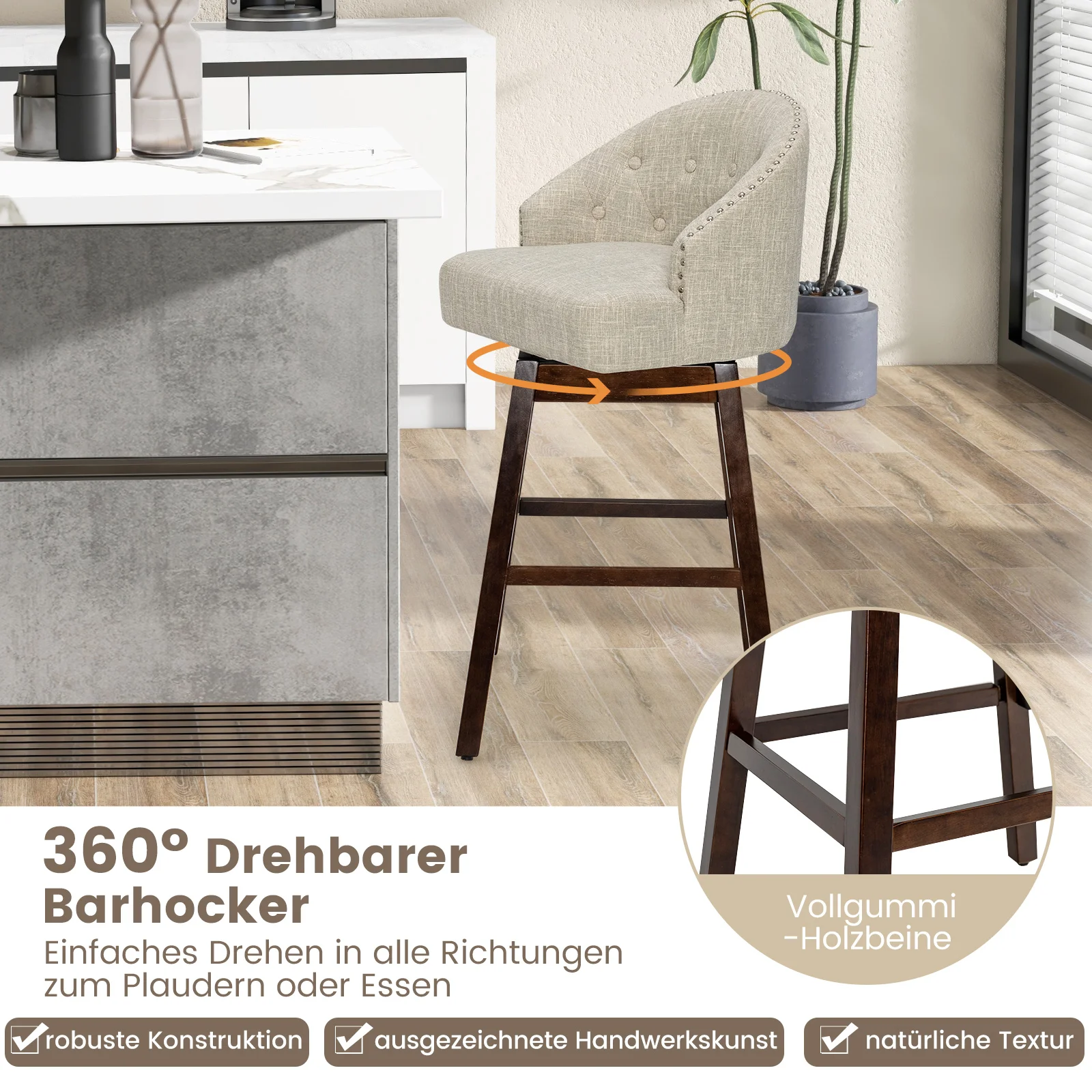 Barhocker 2er Set, Barstuhl 360° drehbar, Küchenhocker mit Lehne und Fußstütze, Sitzhöhe 78cm, Stuhl modern, ideal für Bar - TopDealBox