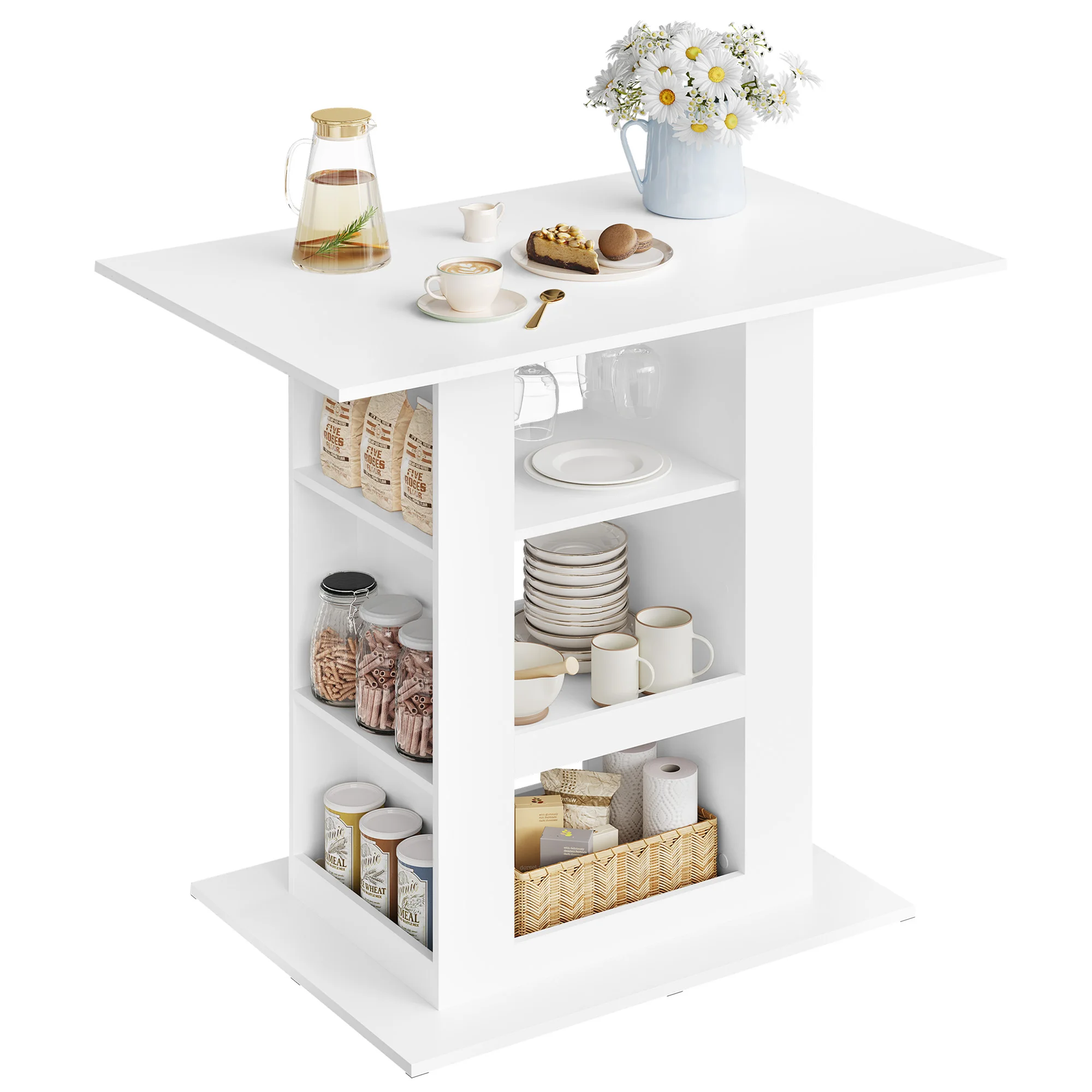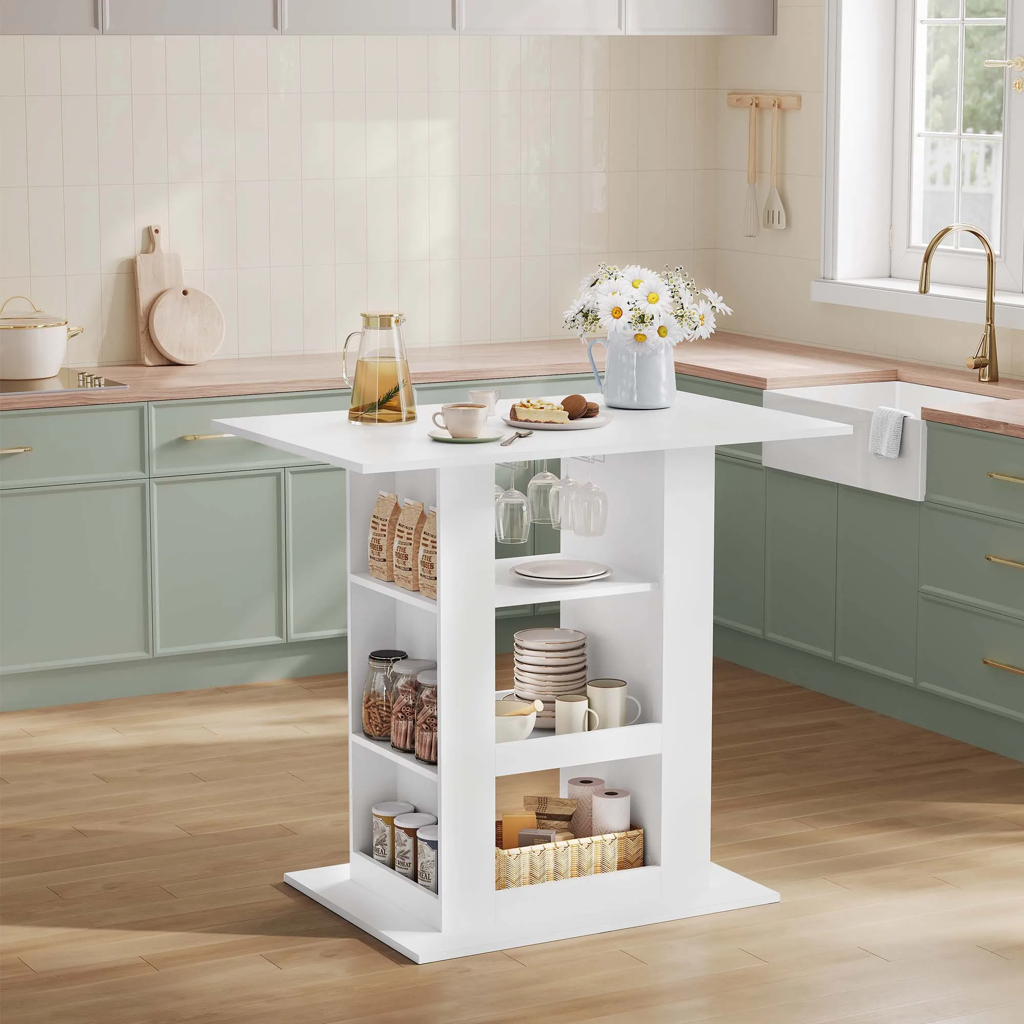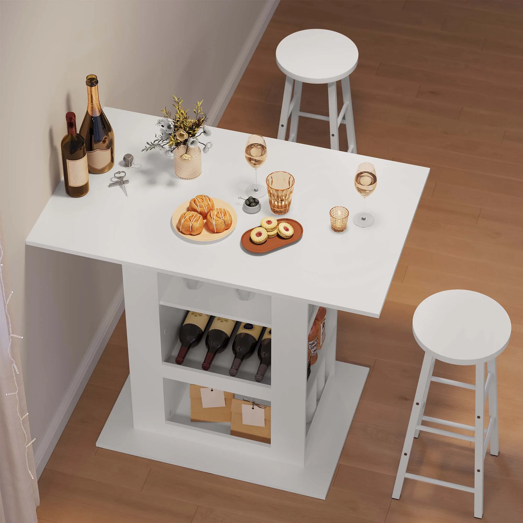 Bartisch mit Stauraum, 105 x 94 x 68 cm, Esstisch, rechteckiger hoher Tisch mit Weinregal für Küche, Wohnzimmer, Heimdekoration - TopDealBox