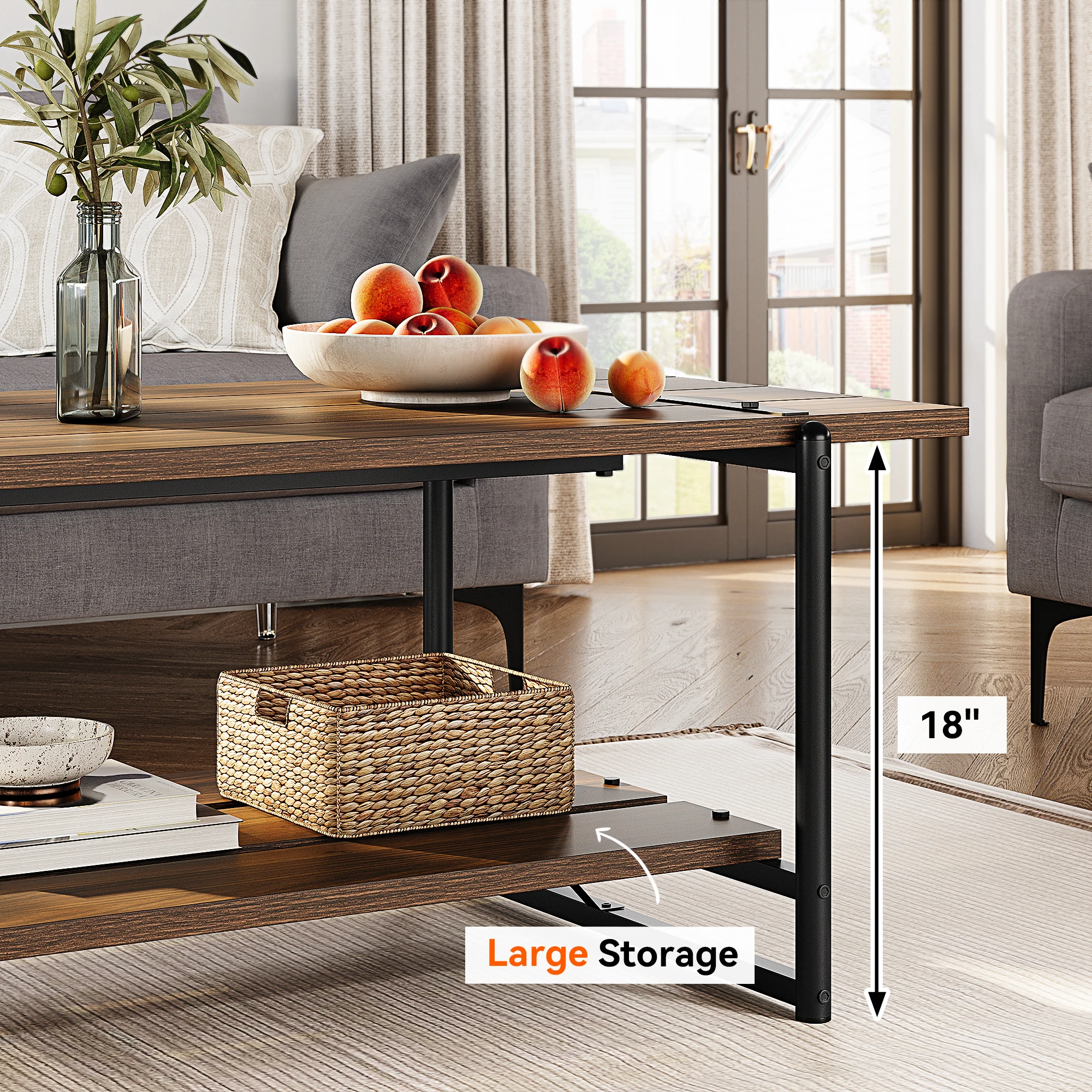 Bauernhaus-Couchtisch aus Holz mit 2 Etagen und Ablagefach, moderner, rustikaler, rechteckiger Couchtisch aus Metall in der Mitte für Wohnzimmer und Büro - TopDealBox